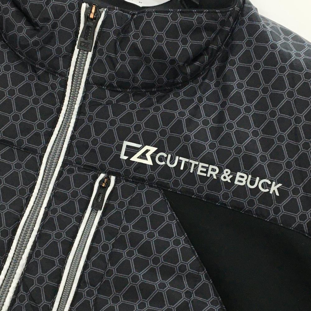 【超美品】カッターアンドバック 中綿ジャケット 黒×グレー 総柄 サイド・袖下切替 胸元ロゴ メンズ M ゴルフウェア CUTTER&BUCK