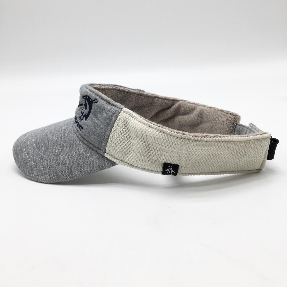 【美品】マンシングウェア サンバイザー グレー×ネイビー 内側パイル地 F(56-60cm) ゴルフウェア Munsingwear