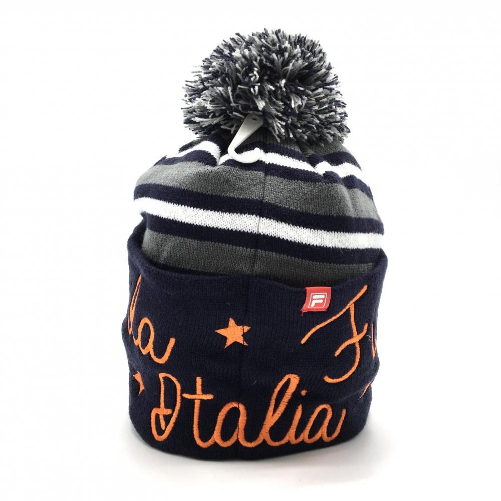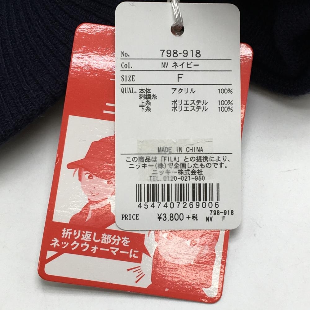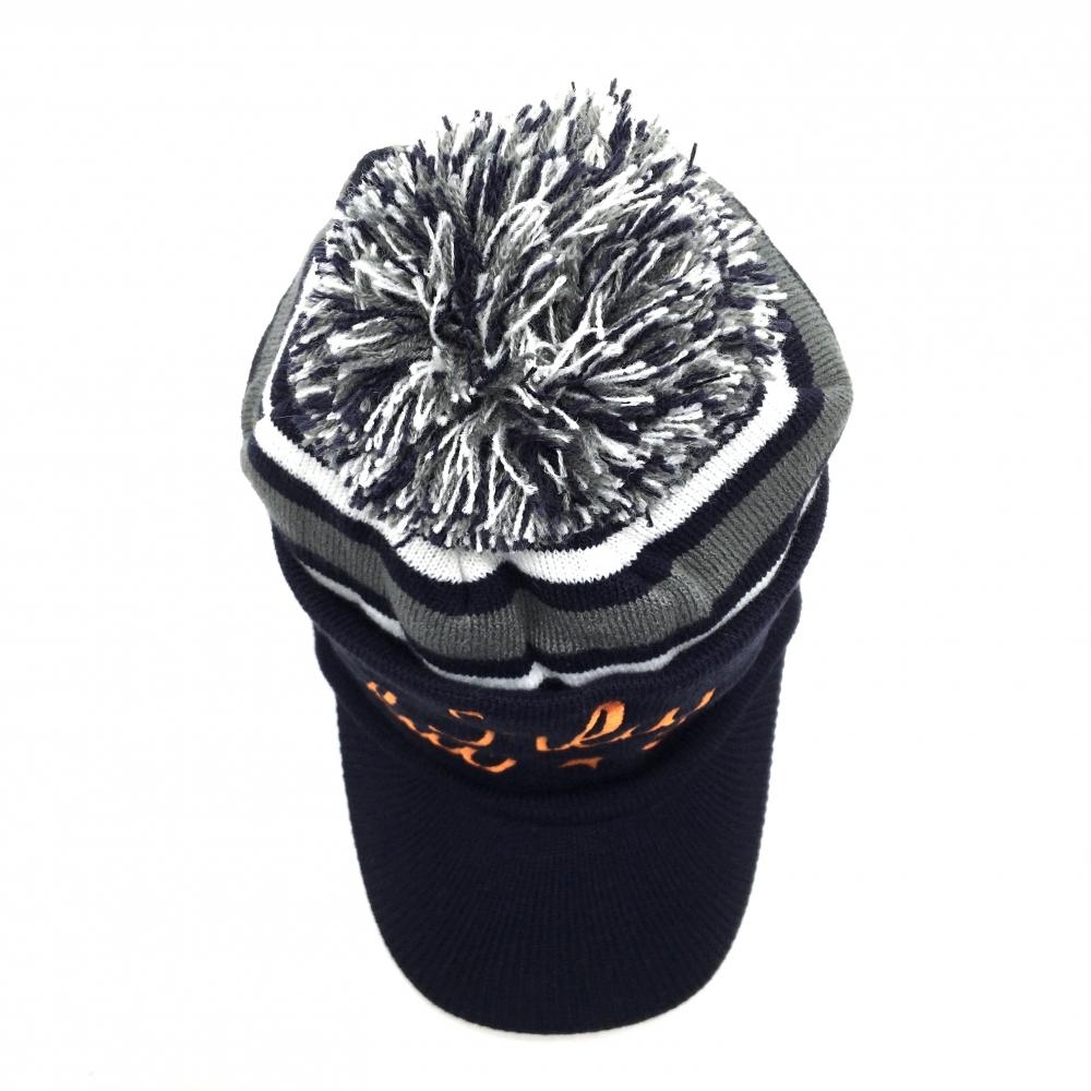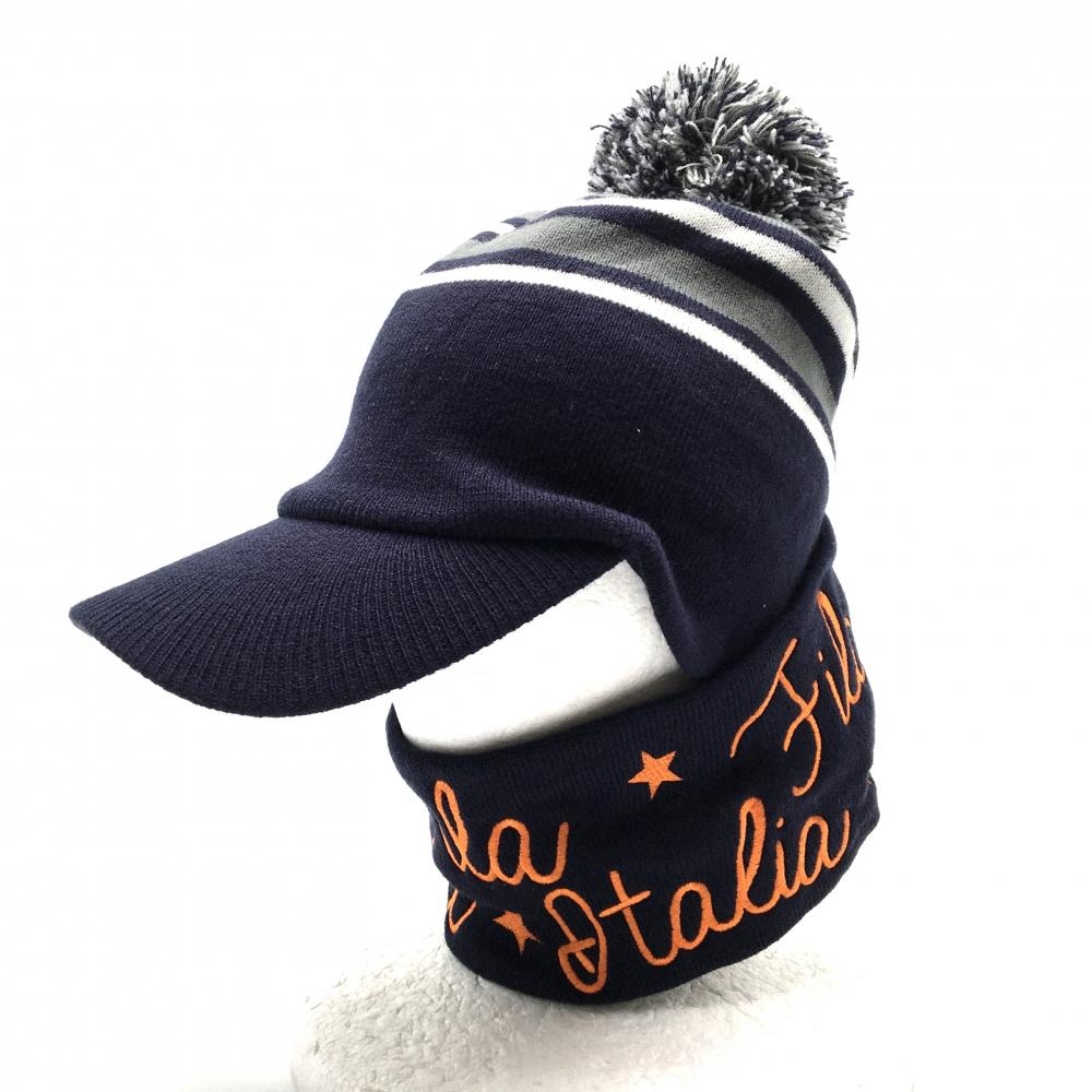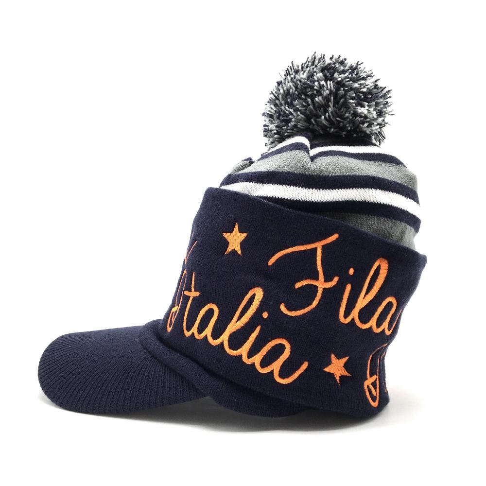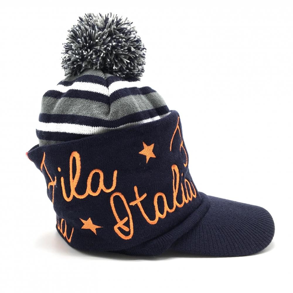 【新品】フィラゴルフ 2WAYつば付きニット帽 ネイビー×オレンジ ボンボン付き ネックウォーマー レディース F ゴルフウェア FILA GOLF