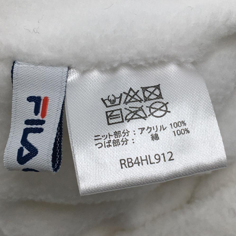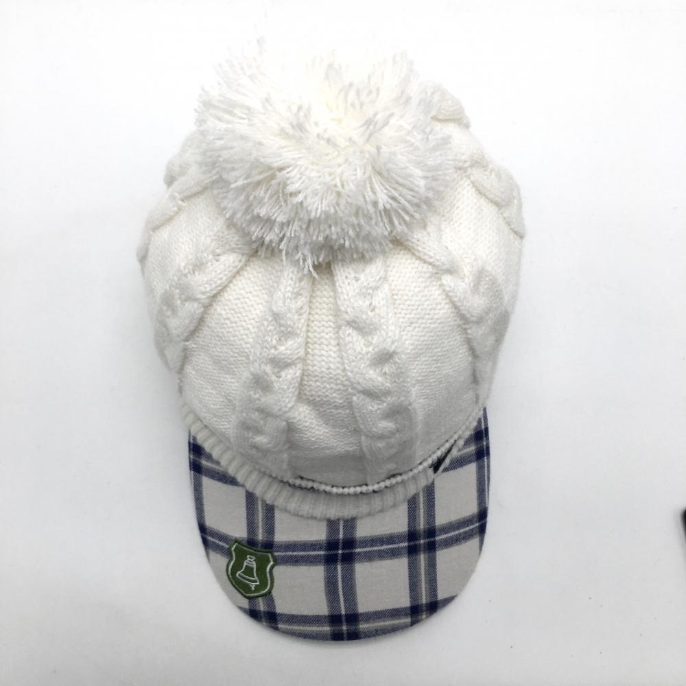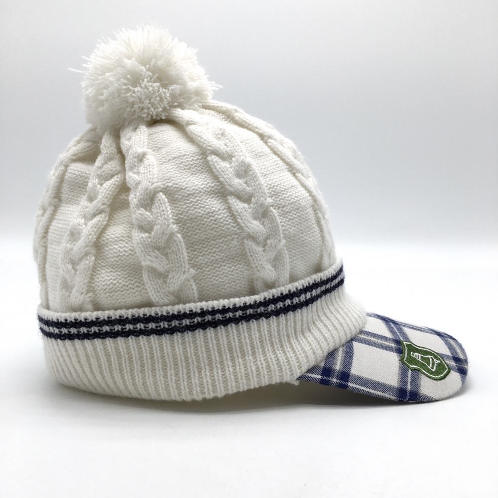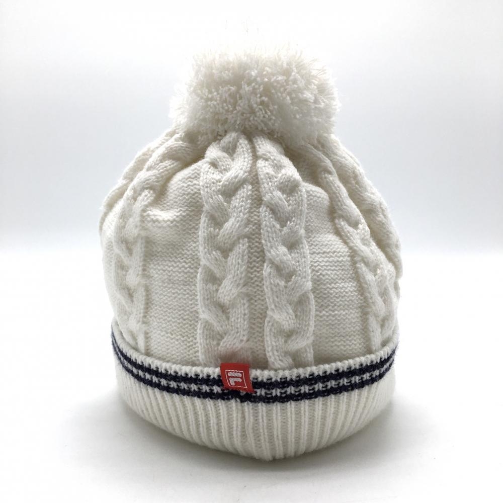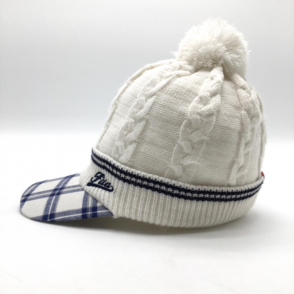 【超美品】フィラゴルフ つば付きニット帽 白×ネイビー ボンボン付き ゴルフウェア FILA GOLF