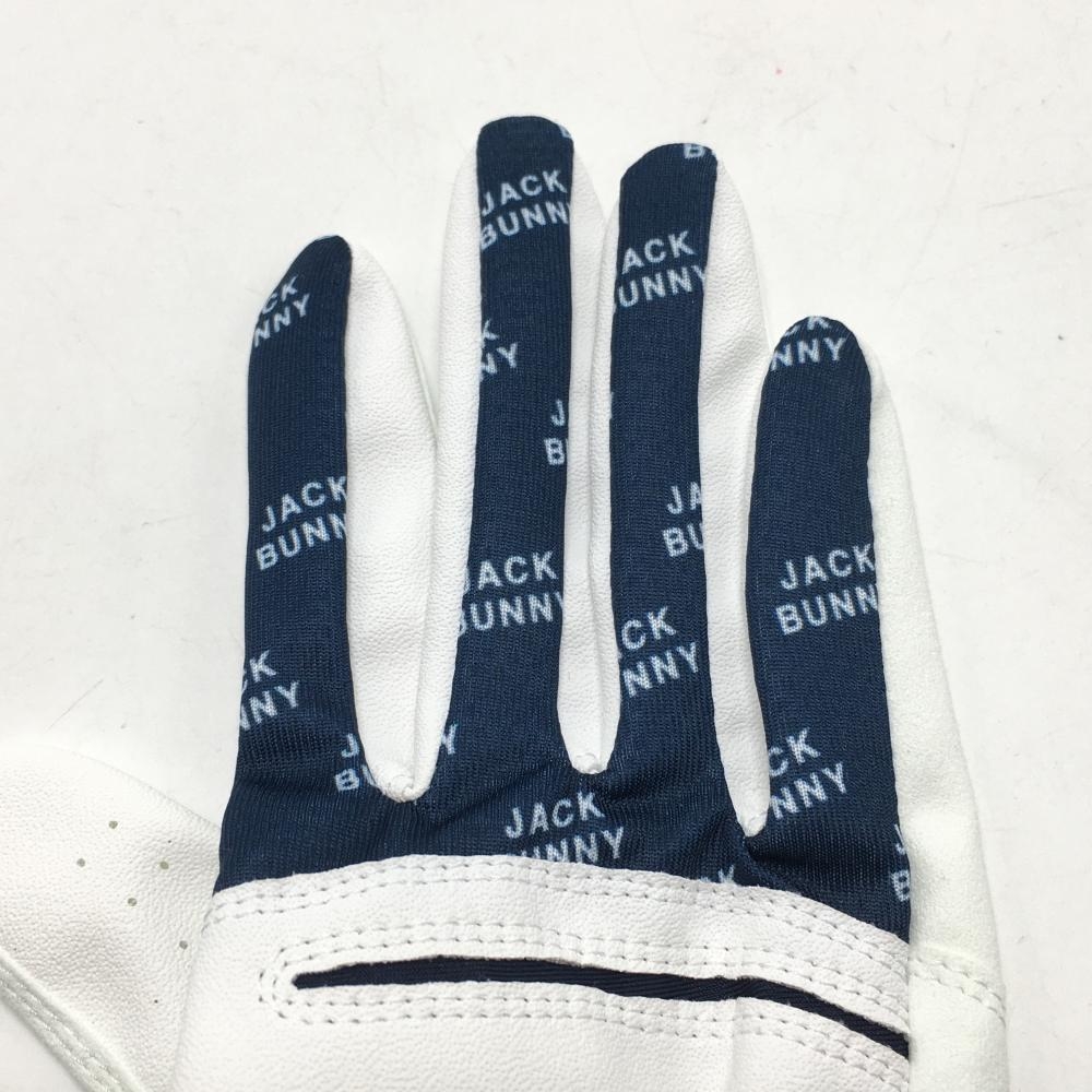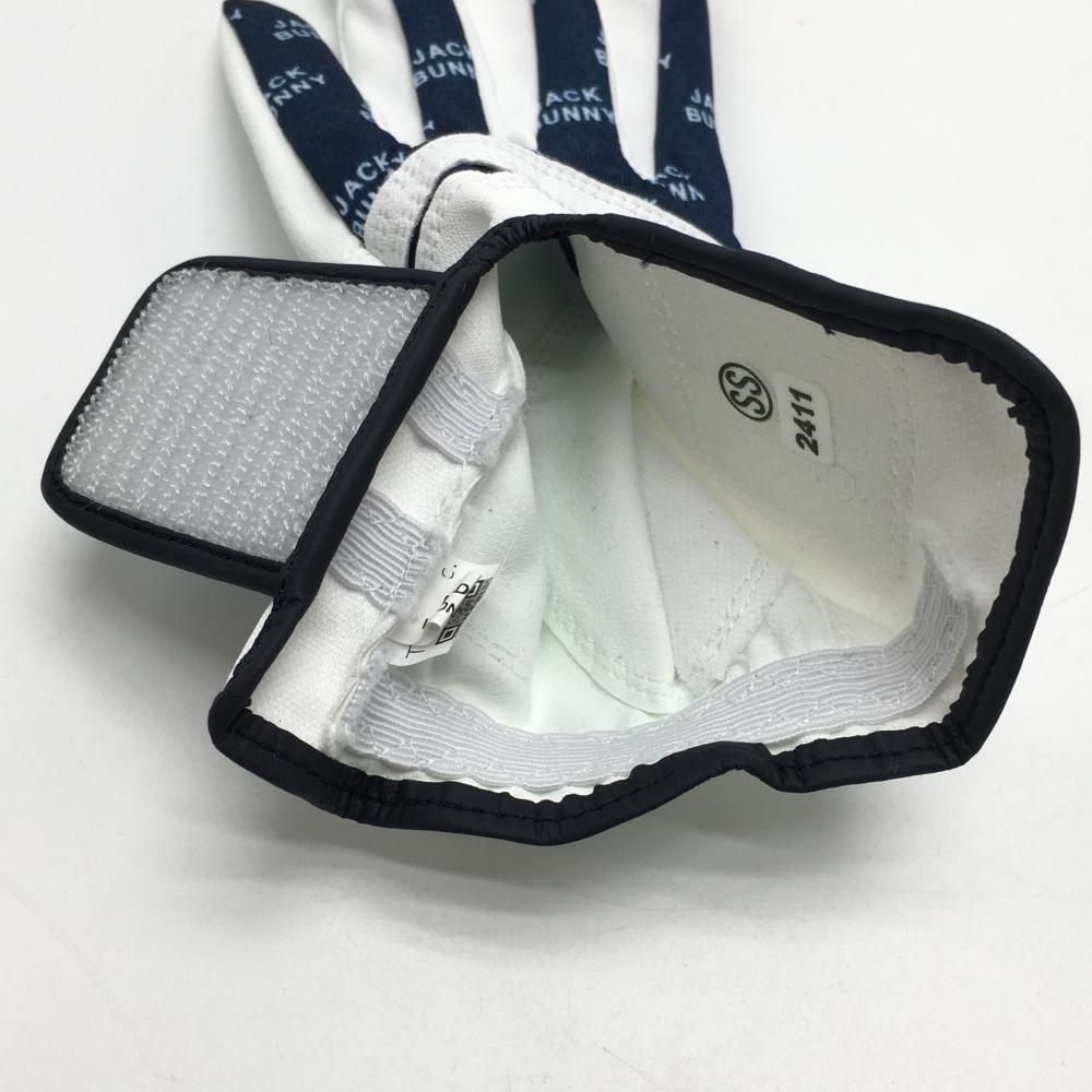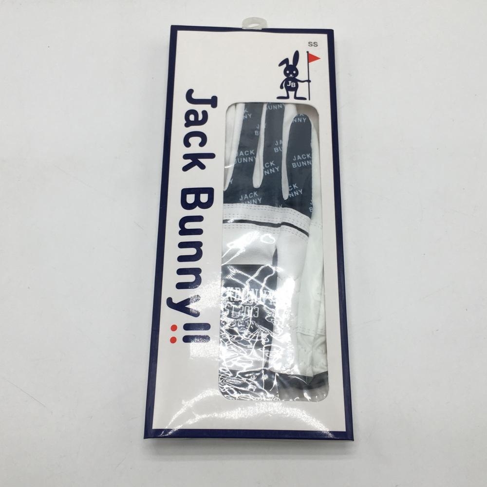 【新品】ジャックバニー グローブ 白×ネイビー 両手用 一部ロゴ柄 レディース SS ゴルフウェア Jack Bunny