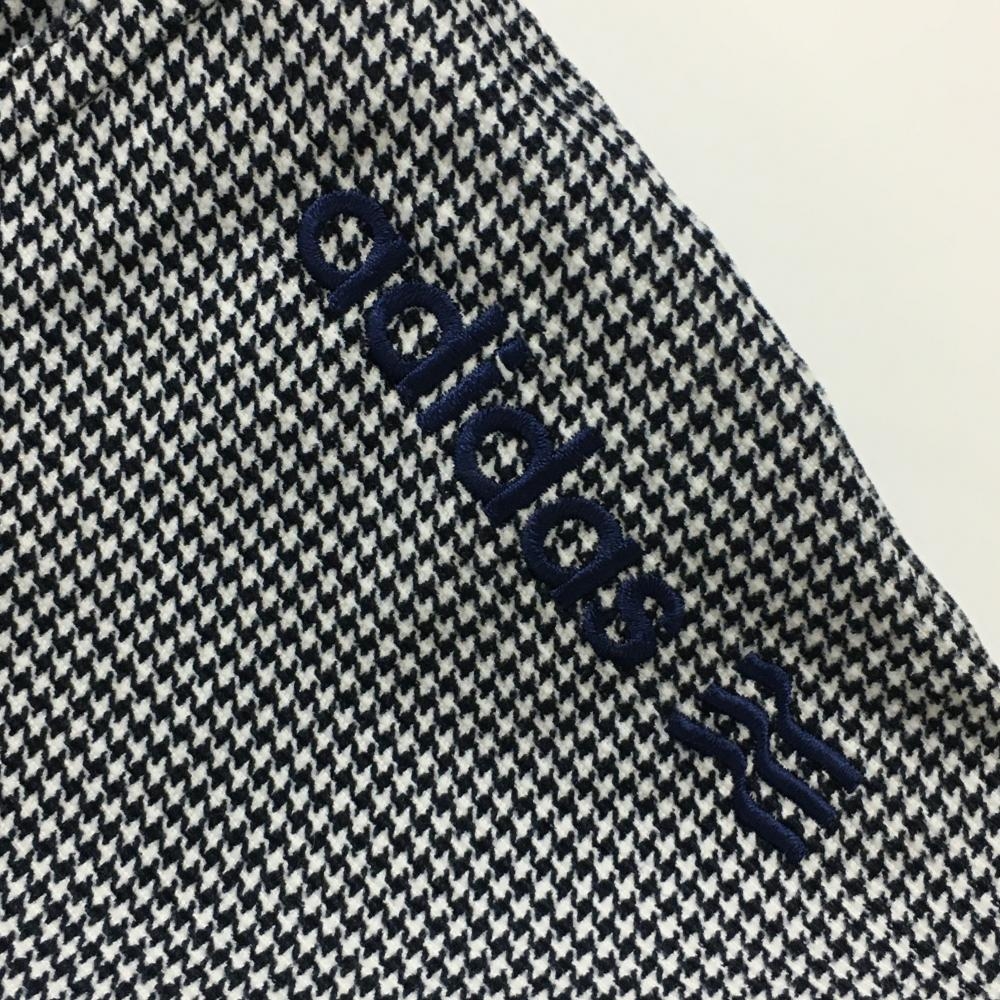 アディダス パンツ 白×ネイビー 千鳥柄 ロゴ刺しゅう レディース L/G ゴルフウェア adidas