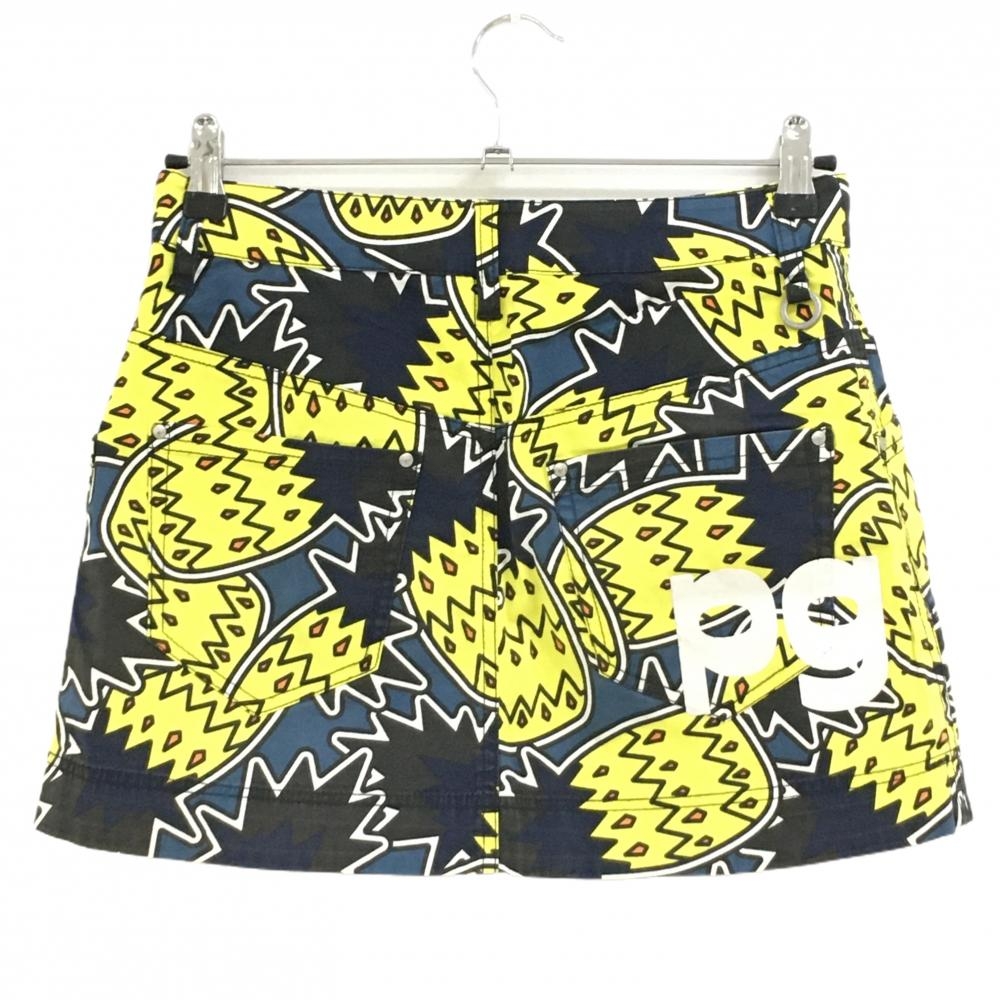パーリーゲイツ スカート ネイビー×イエロー パイナップル柄 レディース 0(S) ゴルフウェア PEARLY GATES