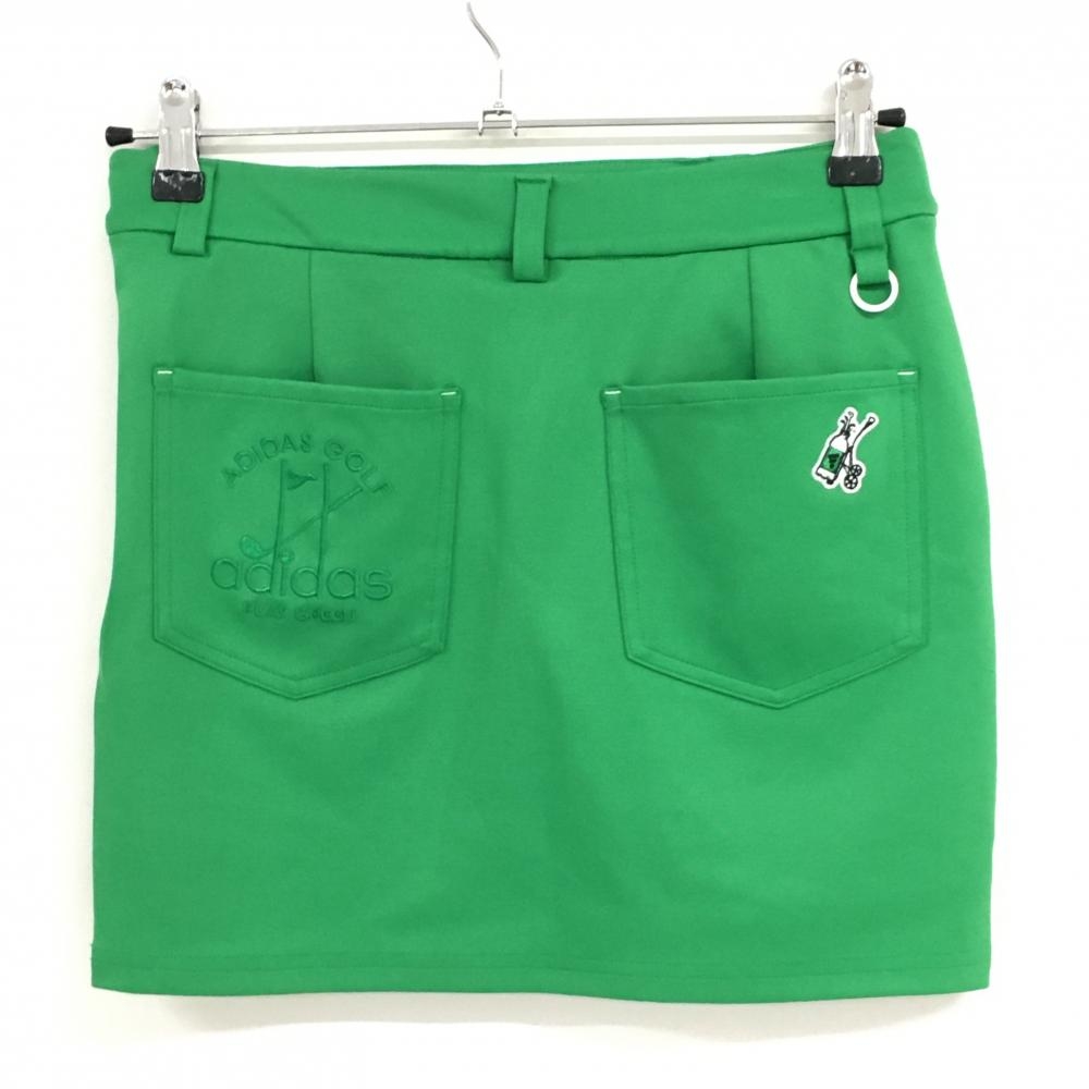 【美品】アディダス スカート グリーン ロゴ刺しゅう 内側インナーパンツ レディース S ゴルフウェア adidas