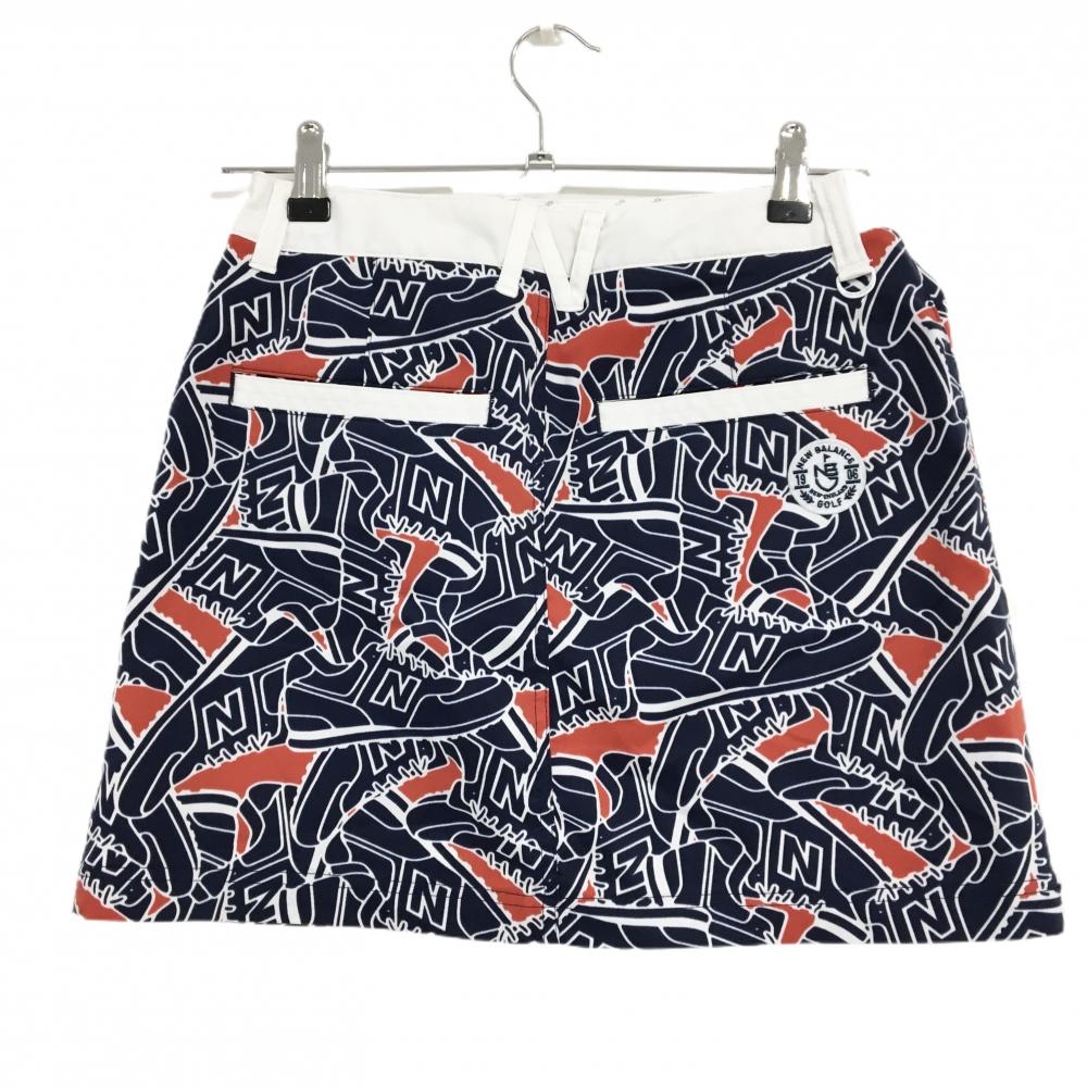 【美品】ニューバランスゴルフ スカート ネイビー×白 スニーカー総柄 ワッペン レディース 0(S) ゴルフウェア New Balance