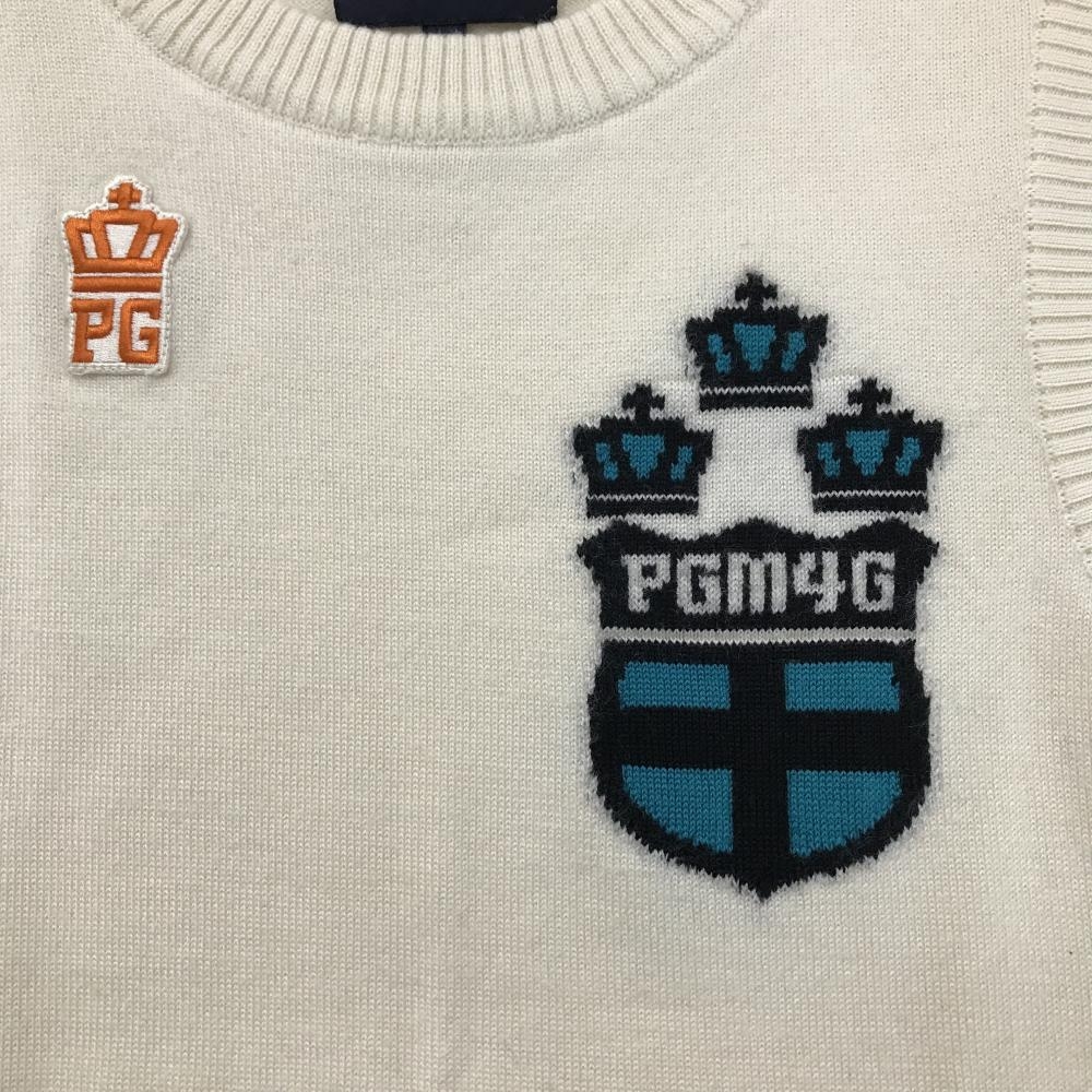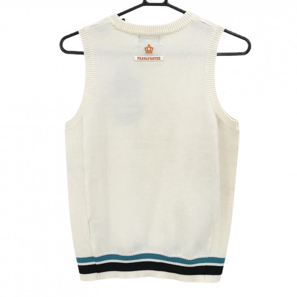 パーリーゲイツ ニットベスト アイボリー×ブルーグリーン系 ウール混 レディース 0(S) ゴルフウェア PEARLY GATES