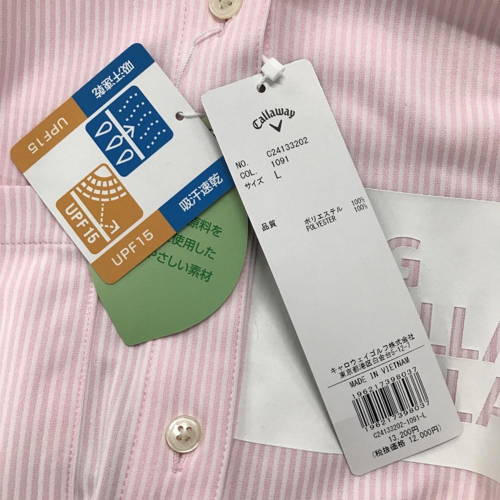 【新品】キャロウェイ 長袖シャツ ピンク×白 ストライプ UVカット 吸汗速乾 レディース L ゴルフウェア 2024年モデル Callaway