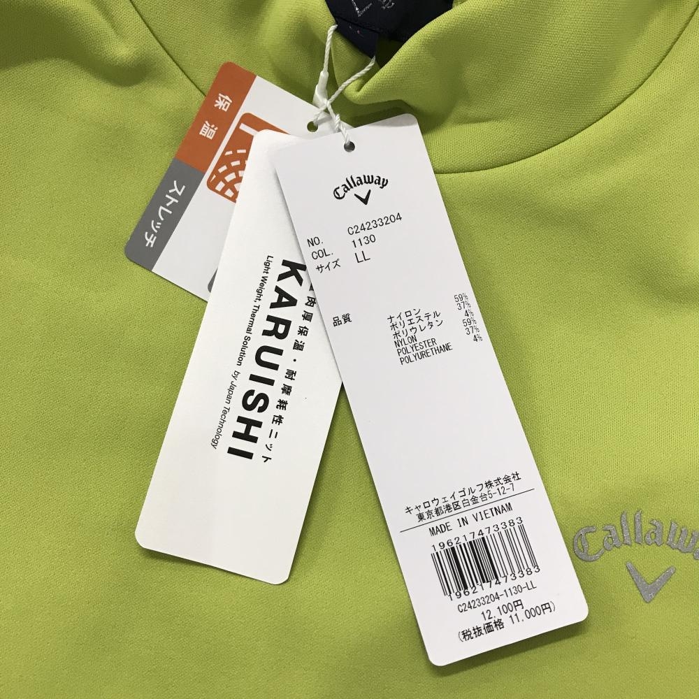 【新品】キャロウェイ 長袖ハイネックシャツ ライトグリーン 裏微起毛 保温 レディース LL ゴルフウェア 2024年モデル Callaway