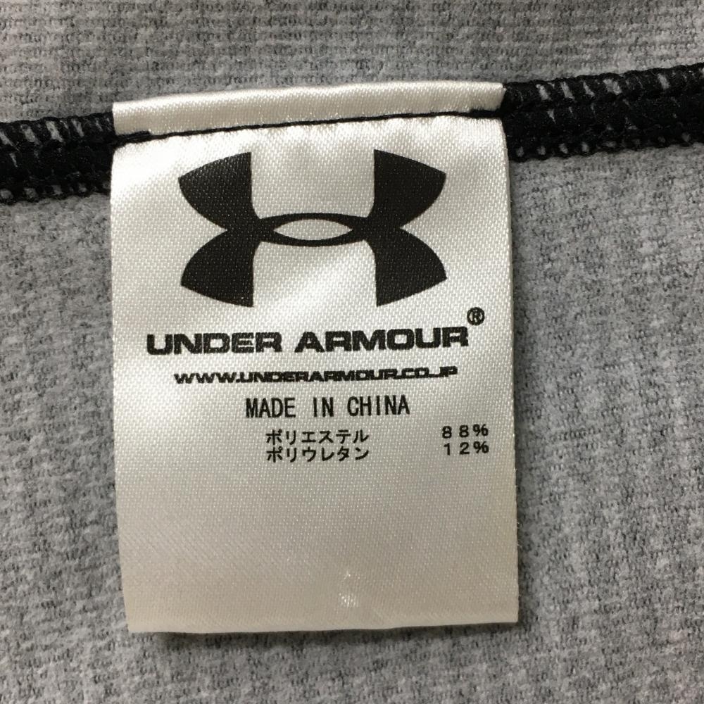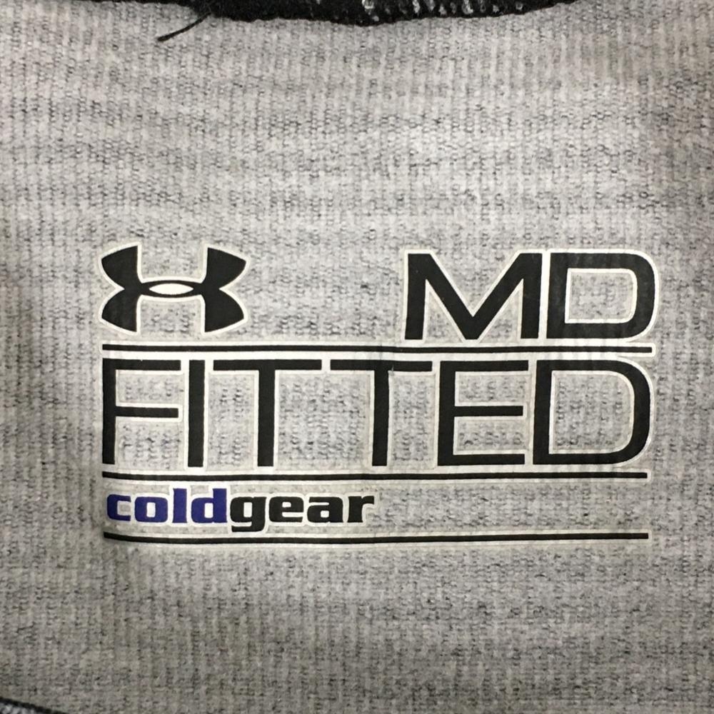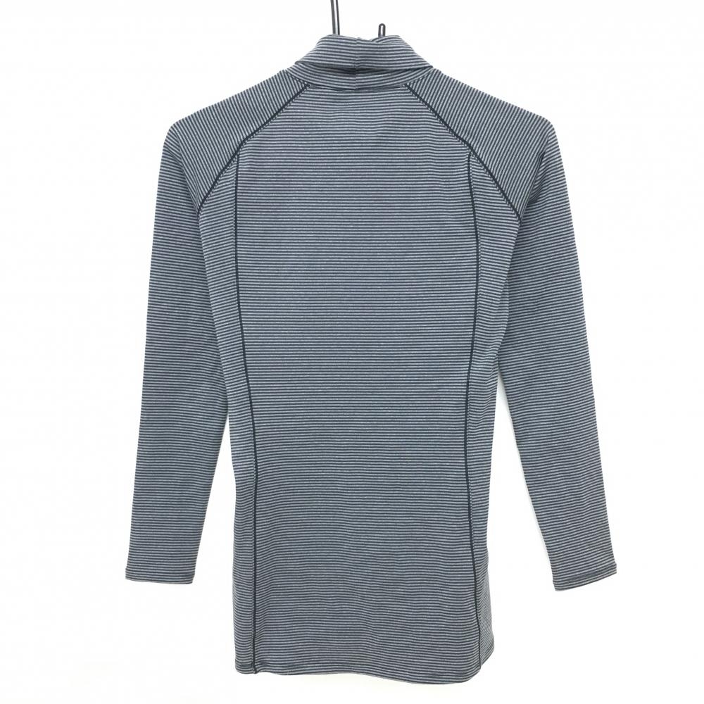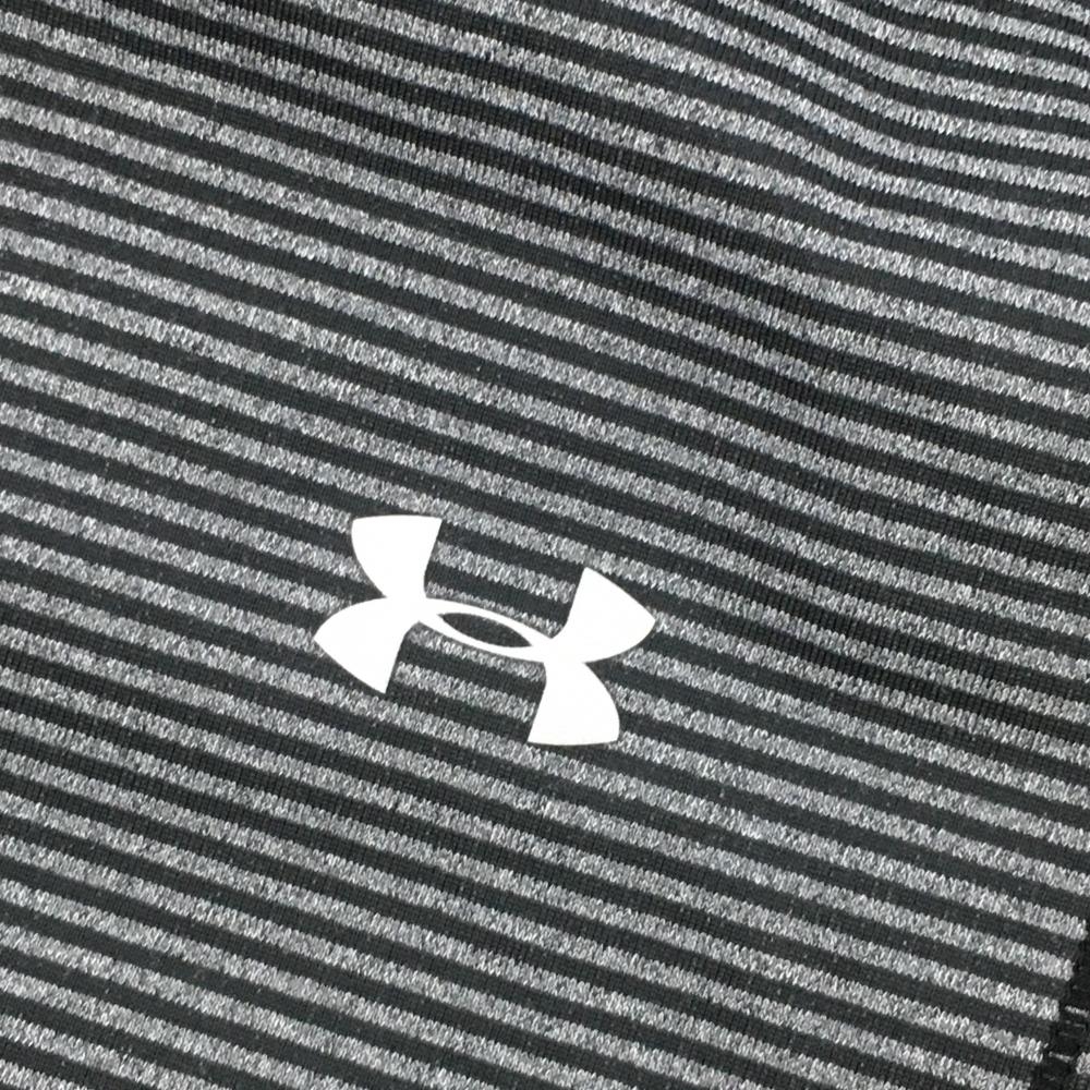 【超美品】アンダーアーマー 長袖ハイネックシャツ グレー×黒 ボーダー 裏微起毛 ロゴプリント レディース MD ゴルフウェア UNDER ARMOUR