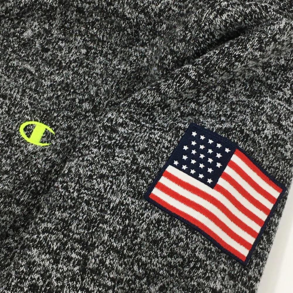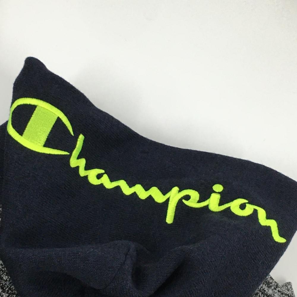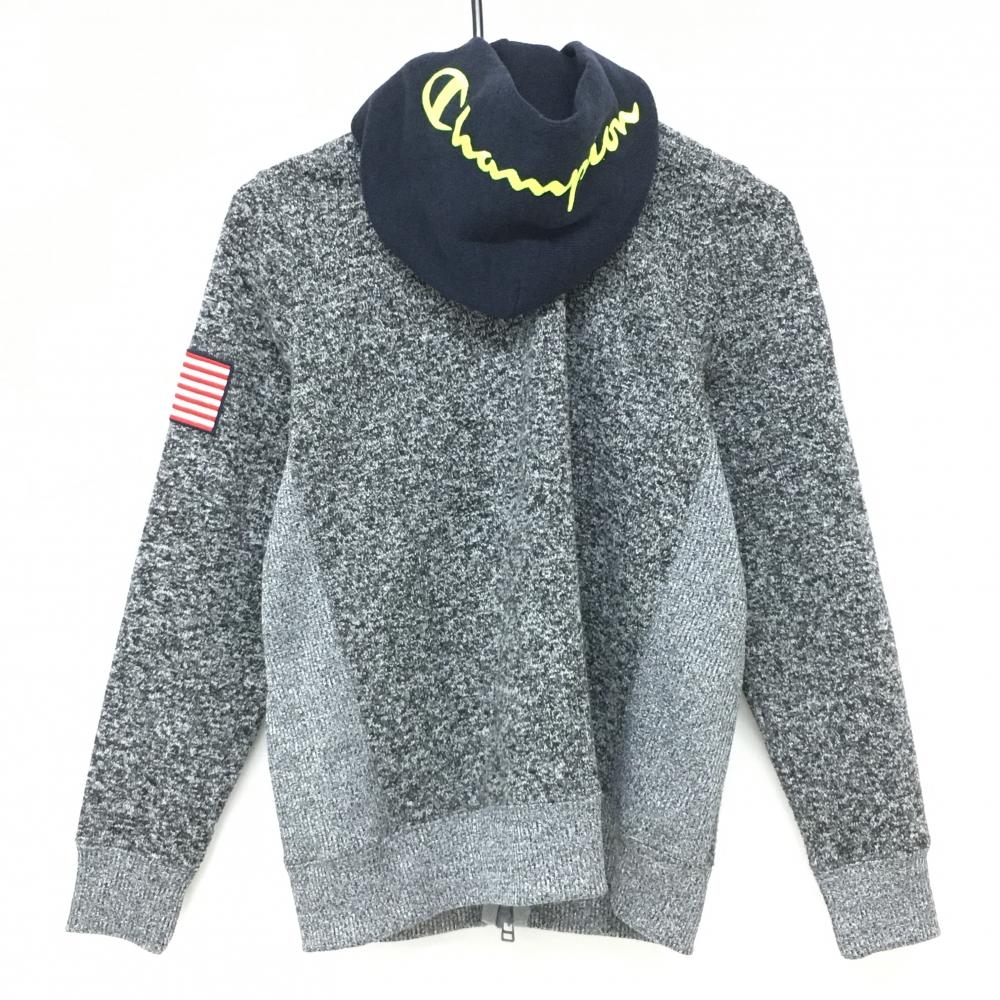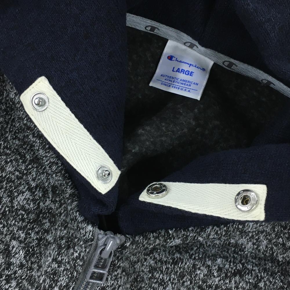 【美品】チャンピオン ニットジップパーカー 杢グレー×ネイビー 裏起毛 ロゴ刺しゅう レディース LARGE ゴルフウェア Champion