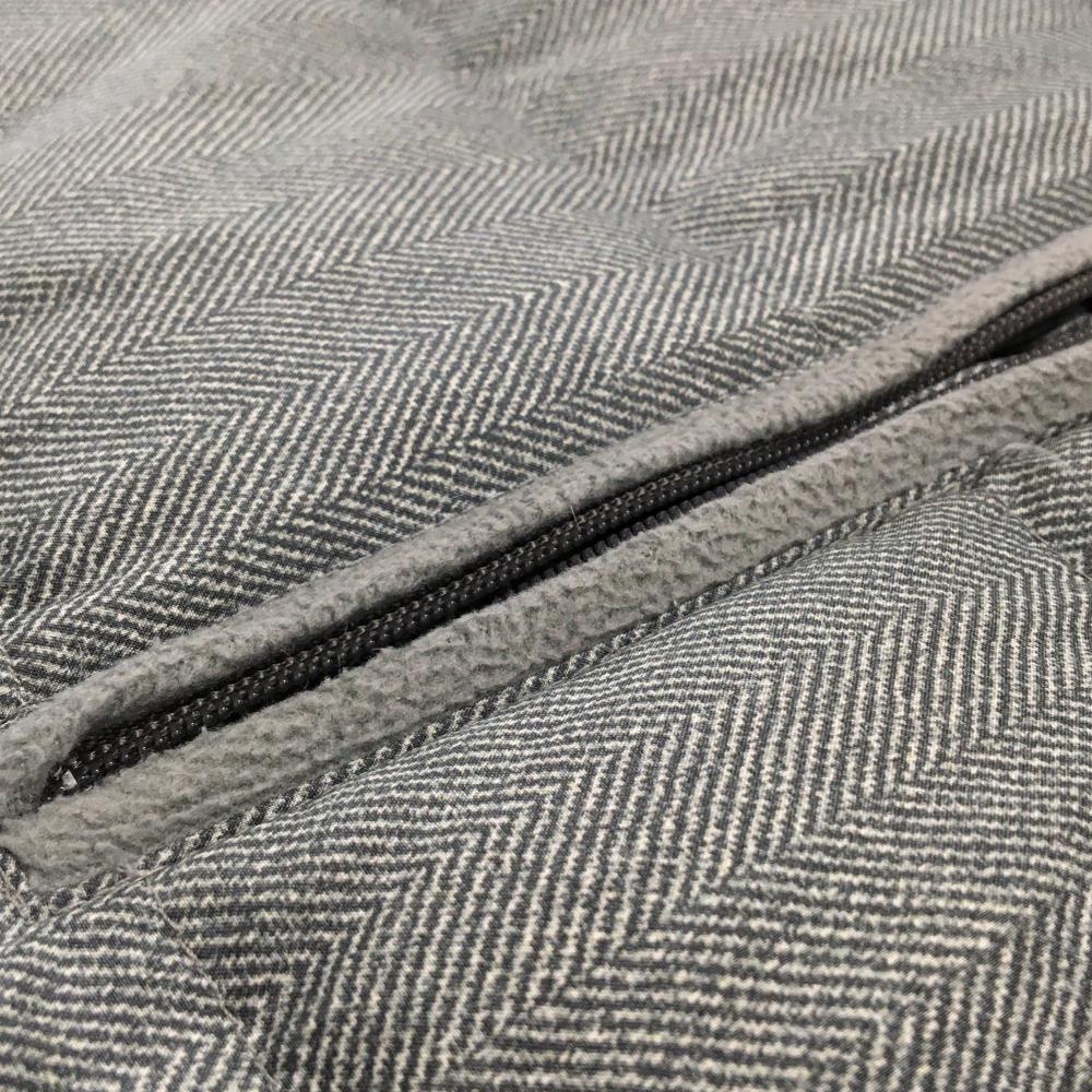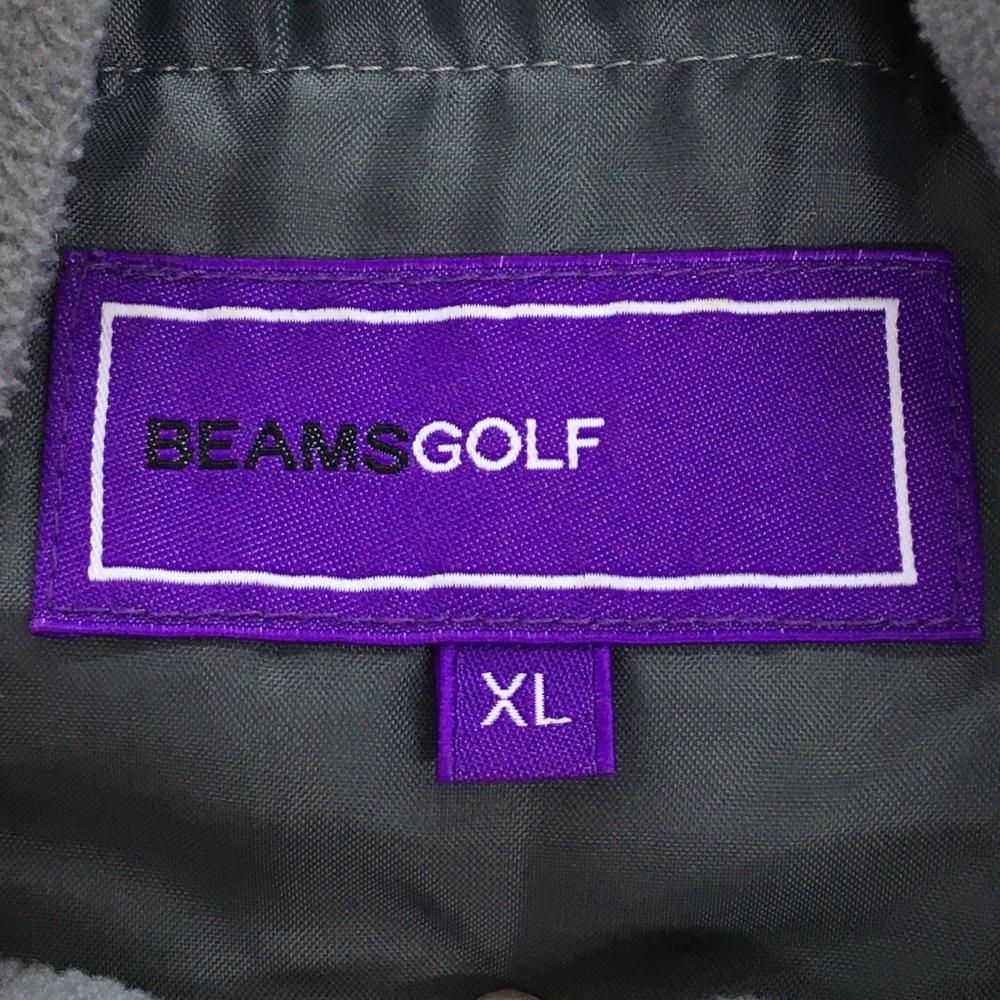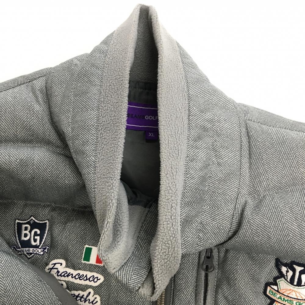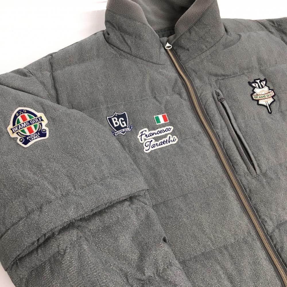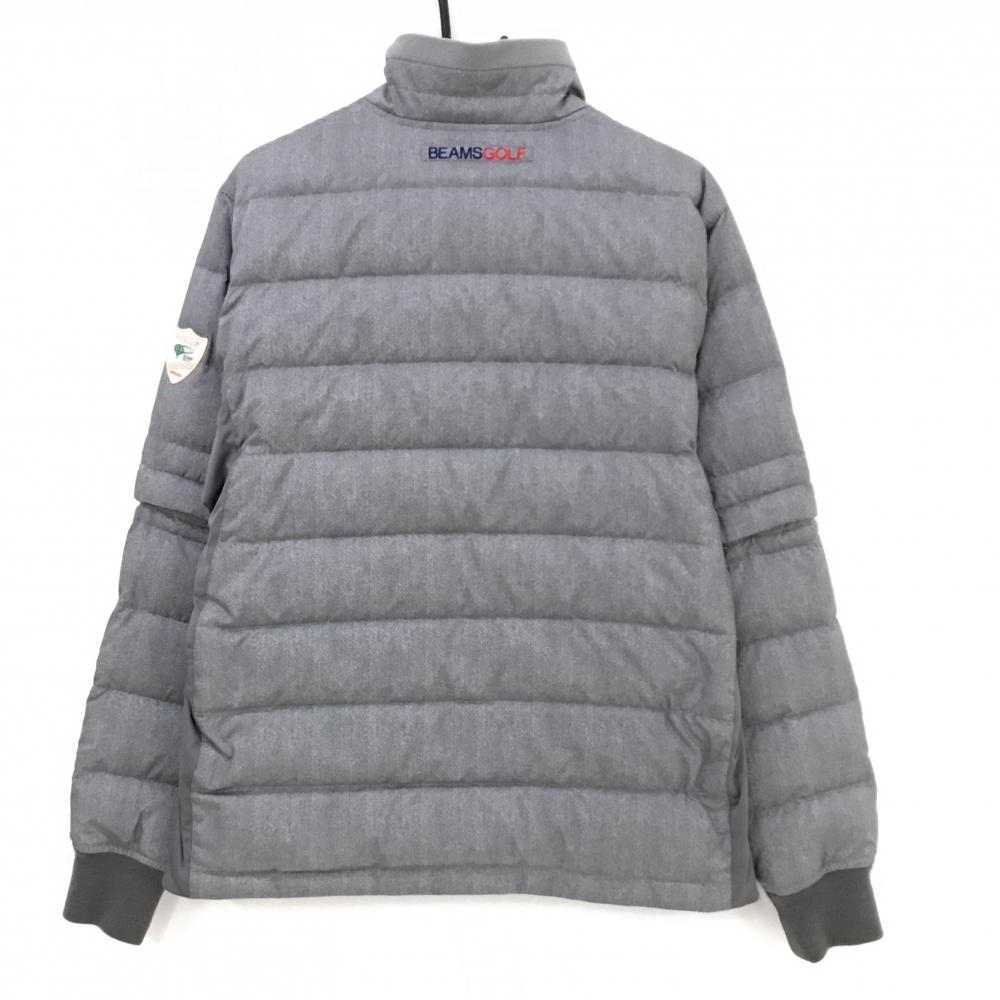 ビームスゴルフ 2WAYダウンジャケット グレー ヘリンボーン地模様 胸元ワッペン 袖着脱可 ダウン80% メンズ XL ゴルフウェア BEAMS GOLF