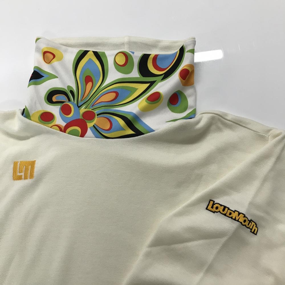 ラウドマウス 長袖ハイネックシャツ アイボリー ネックシャガデリックホワイト ロゴ刺しゅう 表微起毛 メンズ LL ゴルフウェア LOUDMOUTH