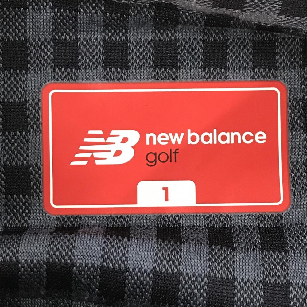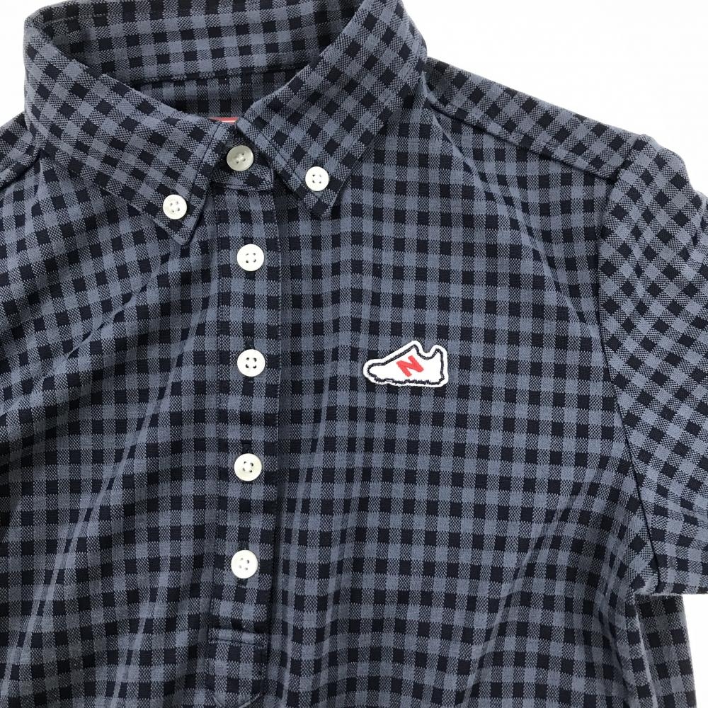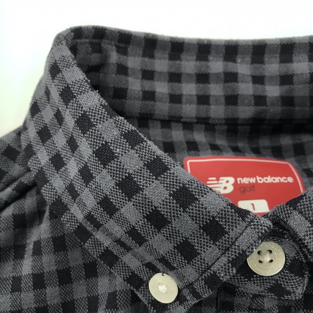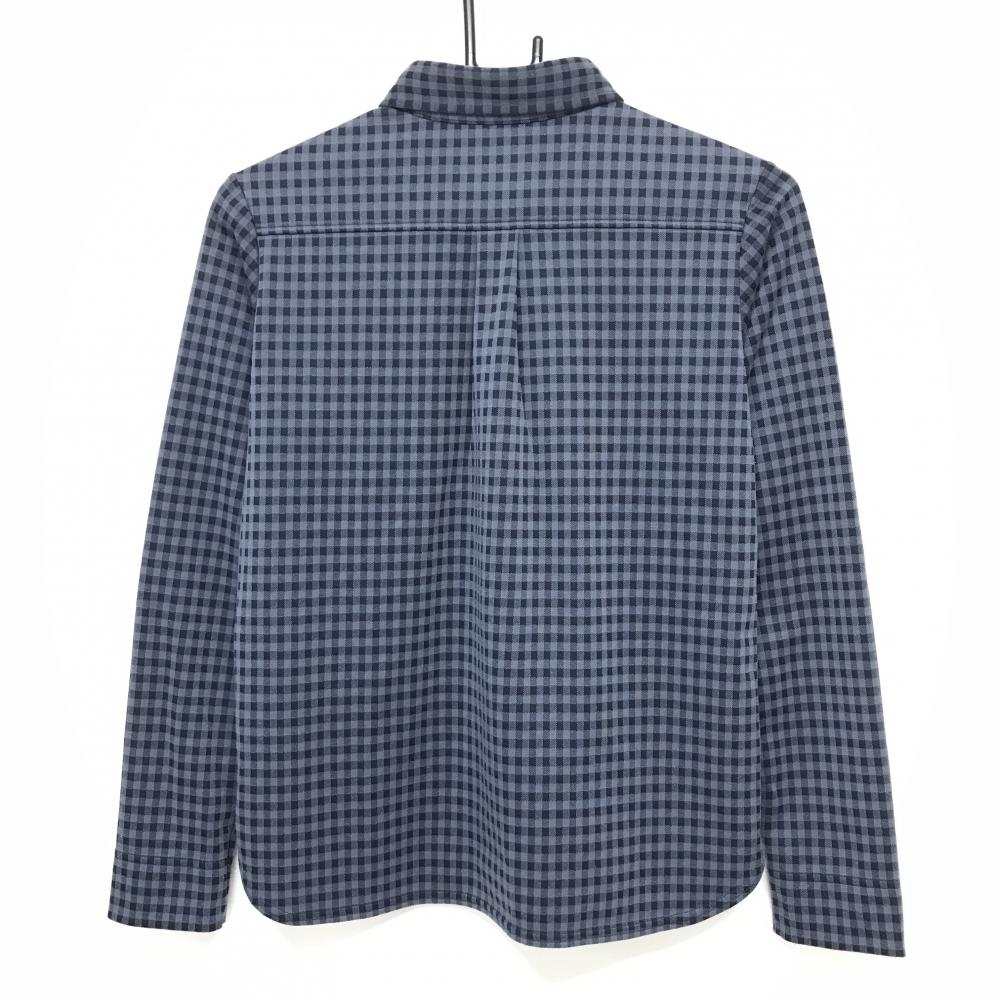 【美品】ニューバランスゴルフ 長袖ポロシャツ ブルーグレー×ネイビー チェック柄 レディース 1(M) ゴルフウェア New Balance
