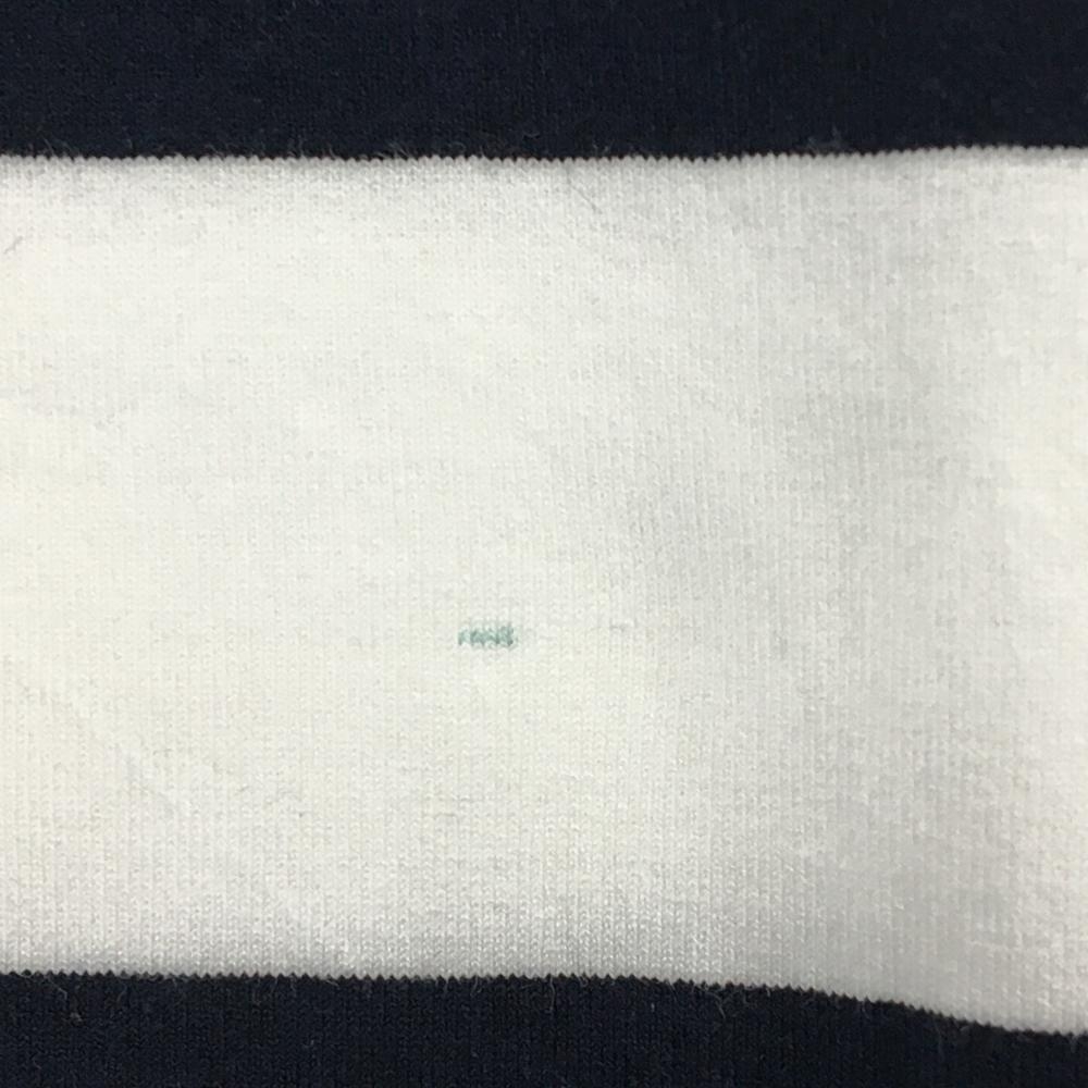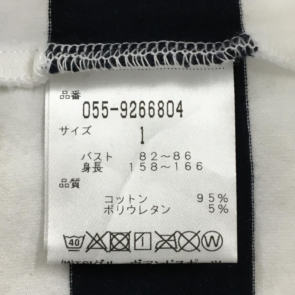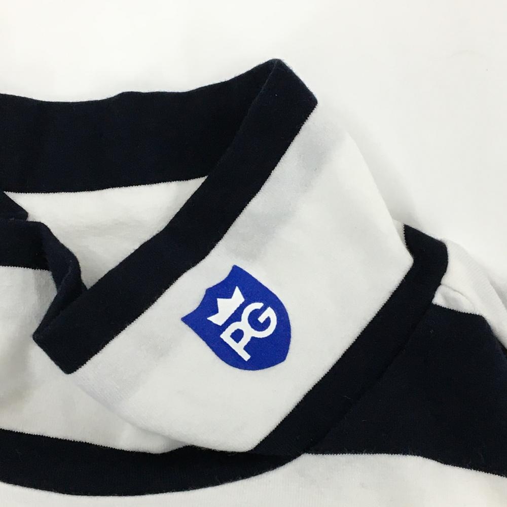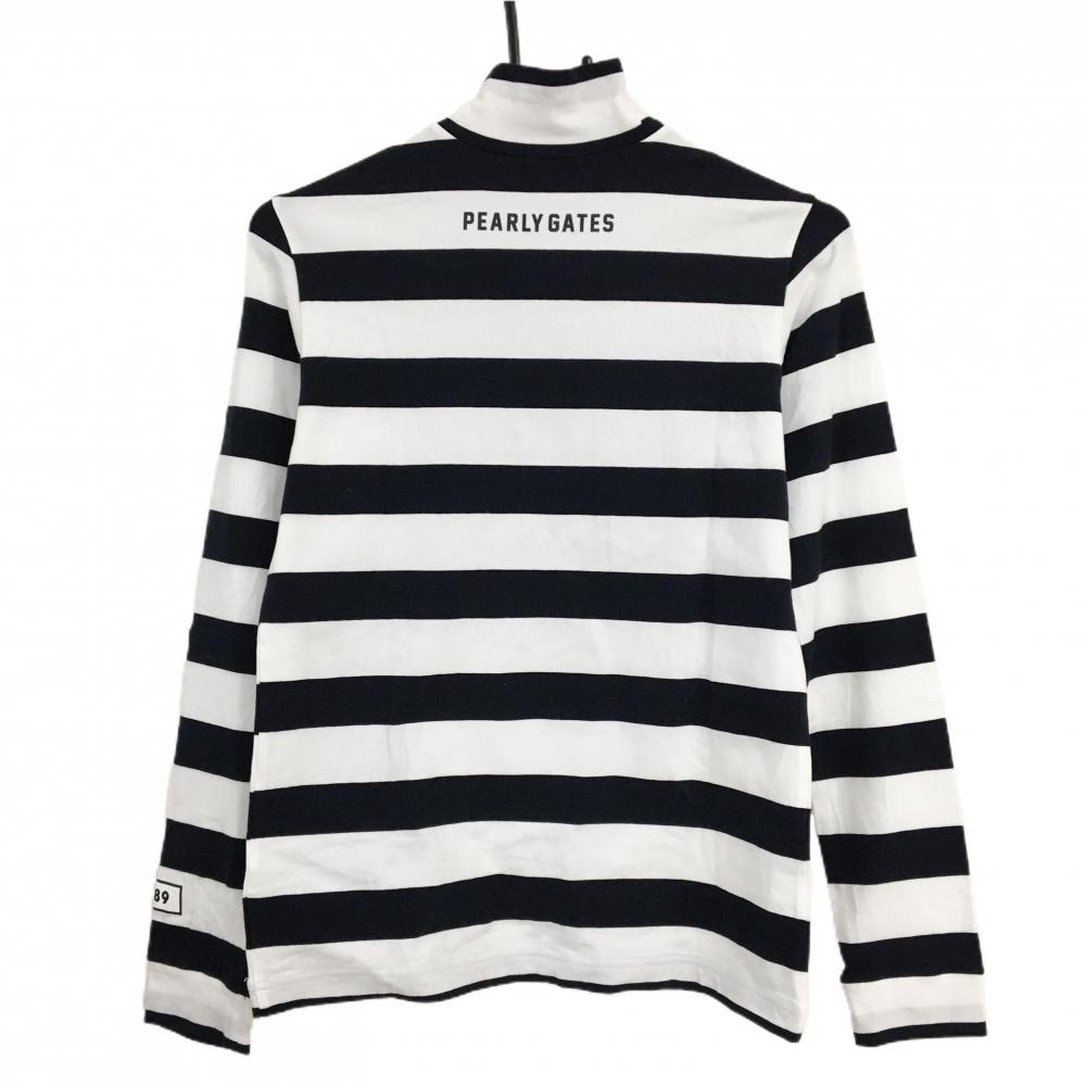 【美品】パーリーゲイツ 長袖ハイネックシャツ 白×ネイビー ボーダー ロゴプリント レディース 1(M) ゴルフウェア PEARLY GATES