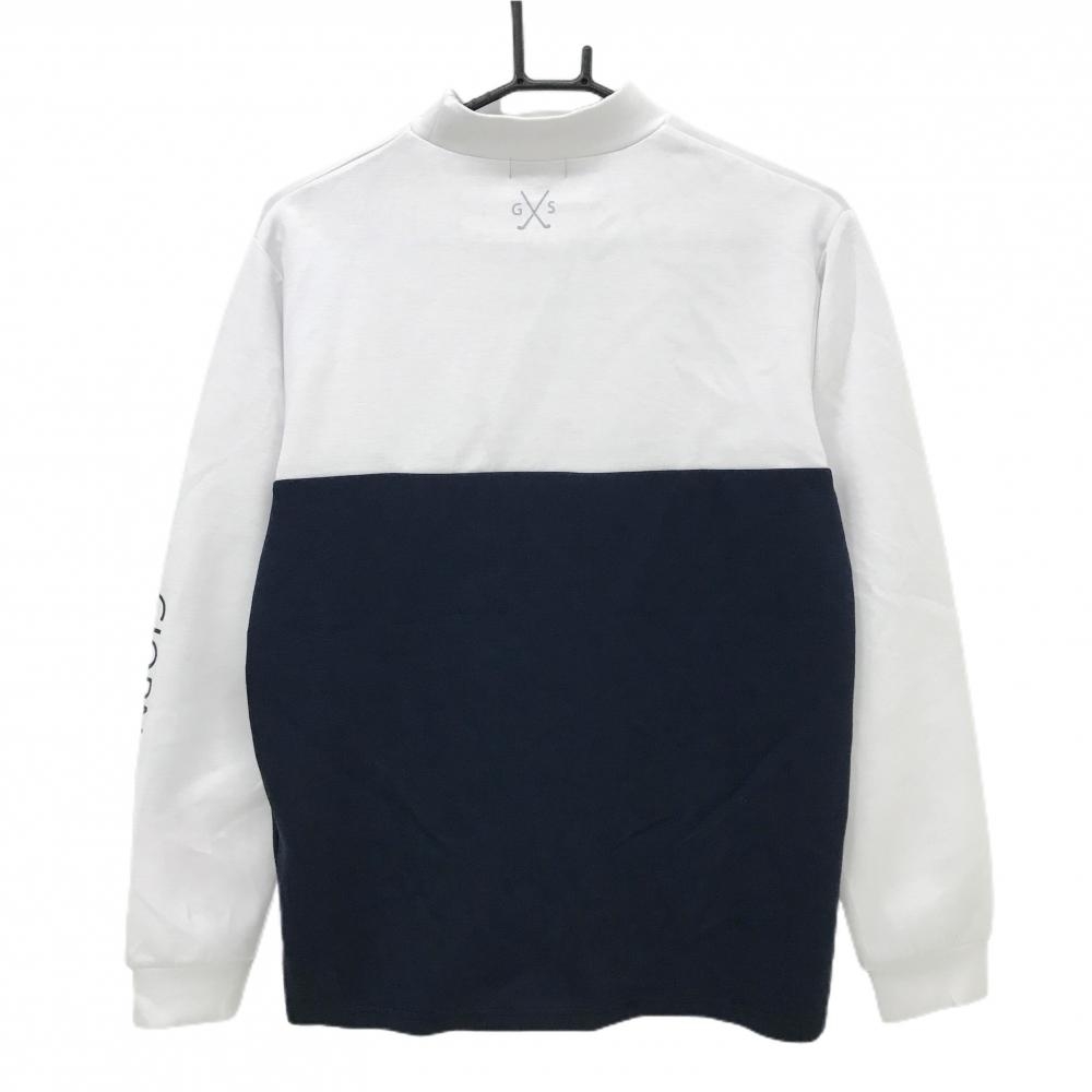 【美品】ジョルノセブン 長袖ハイネックシャツ 白×ネイビー 袖ロゴ メンズ M ゴルフウェア GIORNO SEVEN