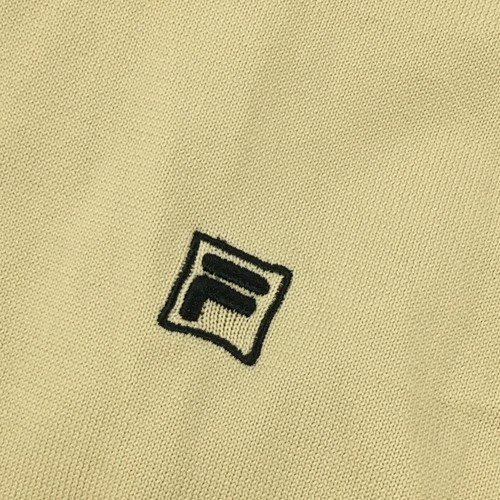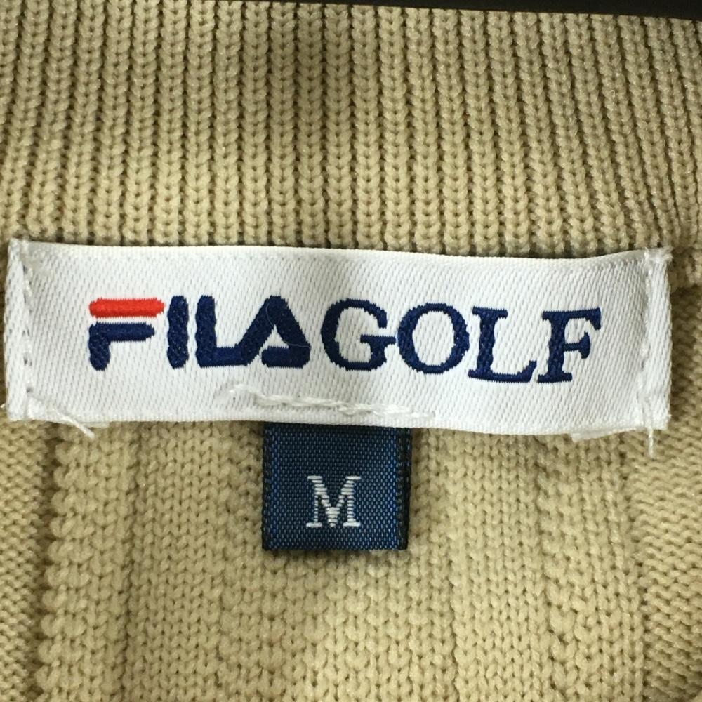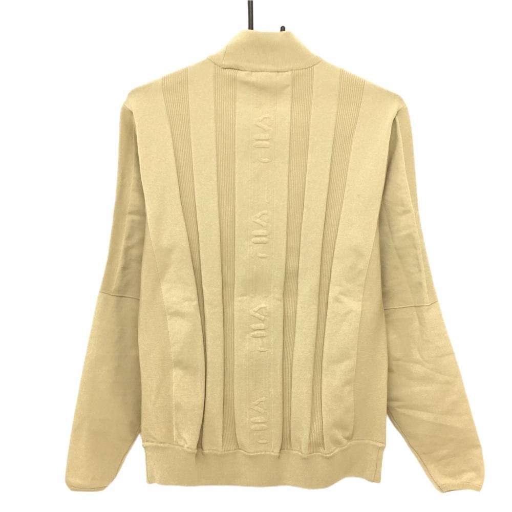 【美品】フィラゴルフ ハイネックセーター ライトブラウン ロゴ刺しゅう 背面ストライプ織 ニット メンズ M ゴルフウェア FILA GOLF