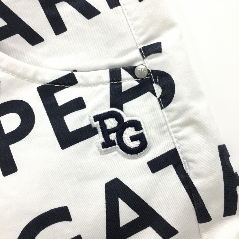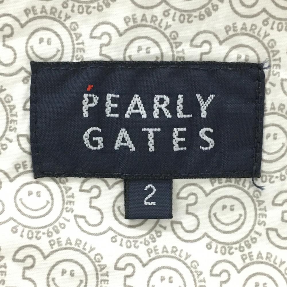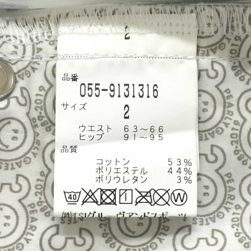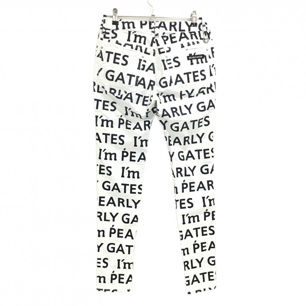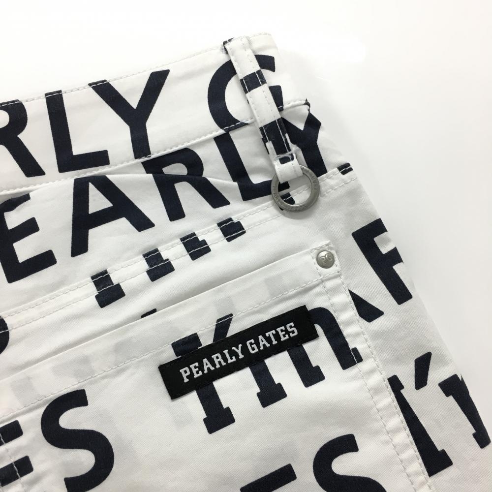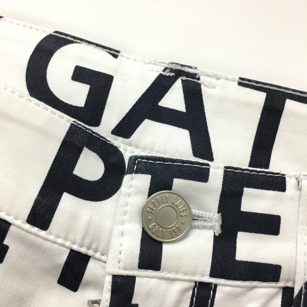 【美品】パーリーゲイツ パンツ 白×ネイビー ロゴ総柄 内側30周年 ストレッチ レディース 2(L) ゴルフウェア PEARLY GATES