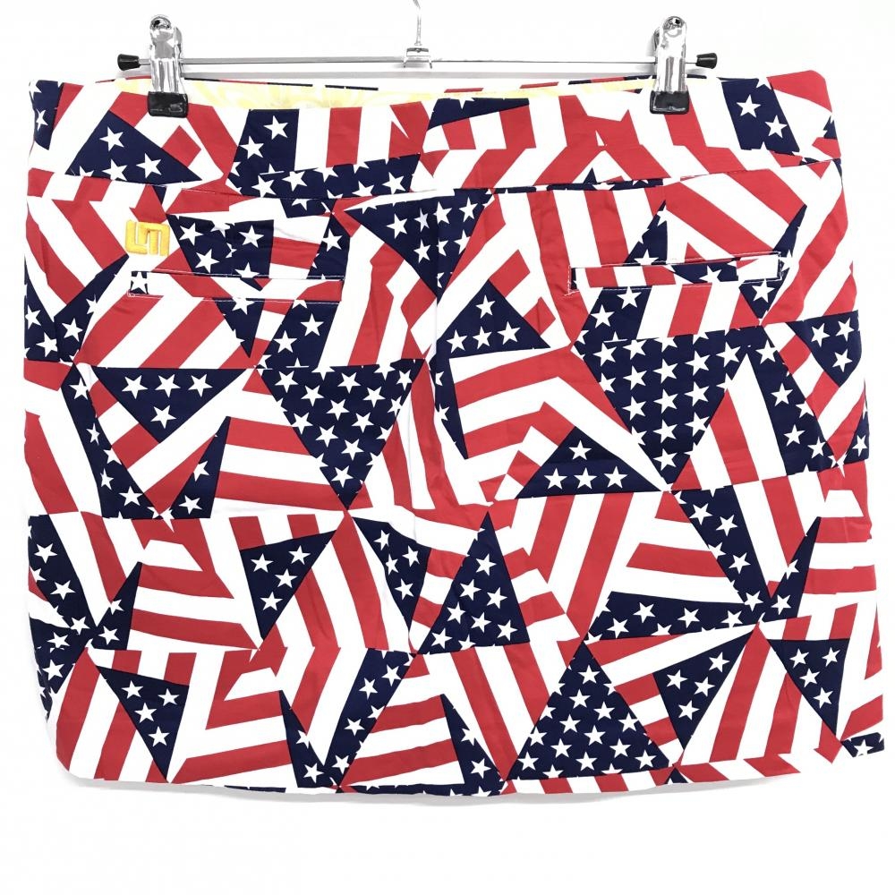【超美品】ラウドマウス スカート 白×ネイビー 星 スターズ&ストライプス レディース US-16 ゴルフウェア 大きいサイズ LOUDMOUTH