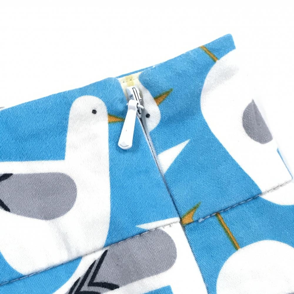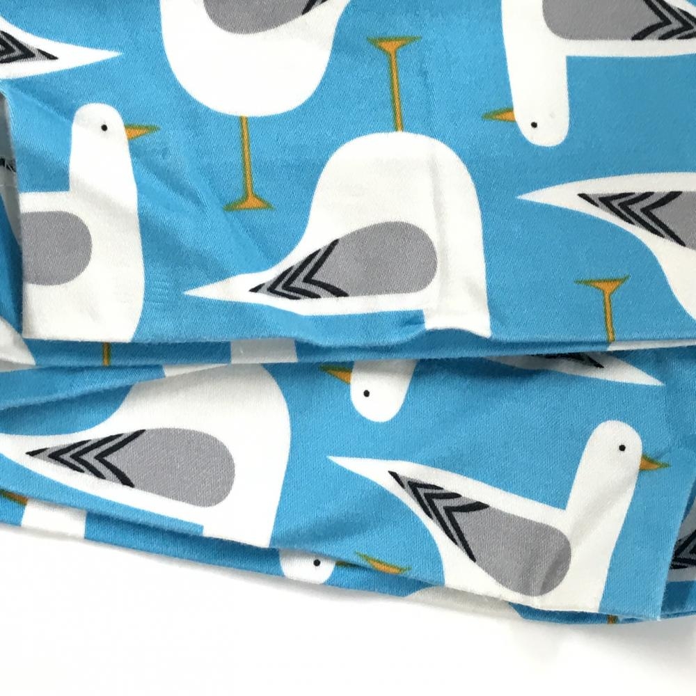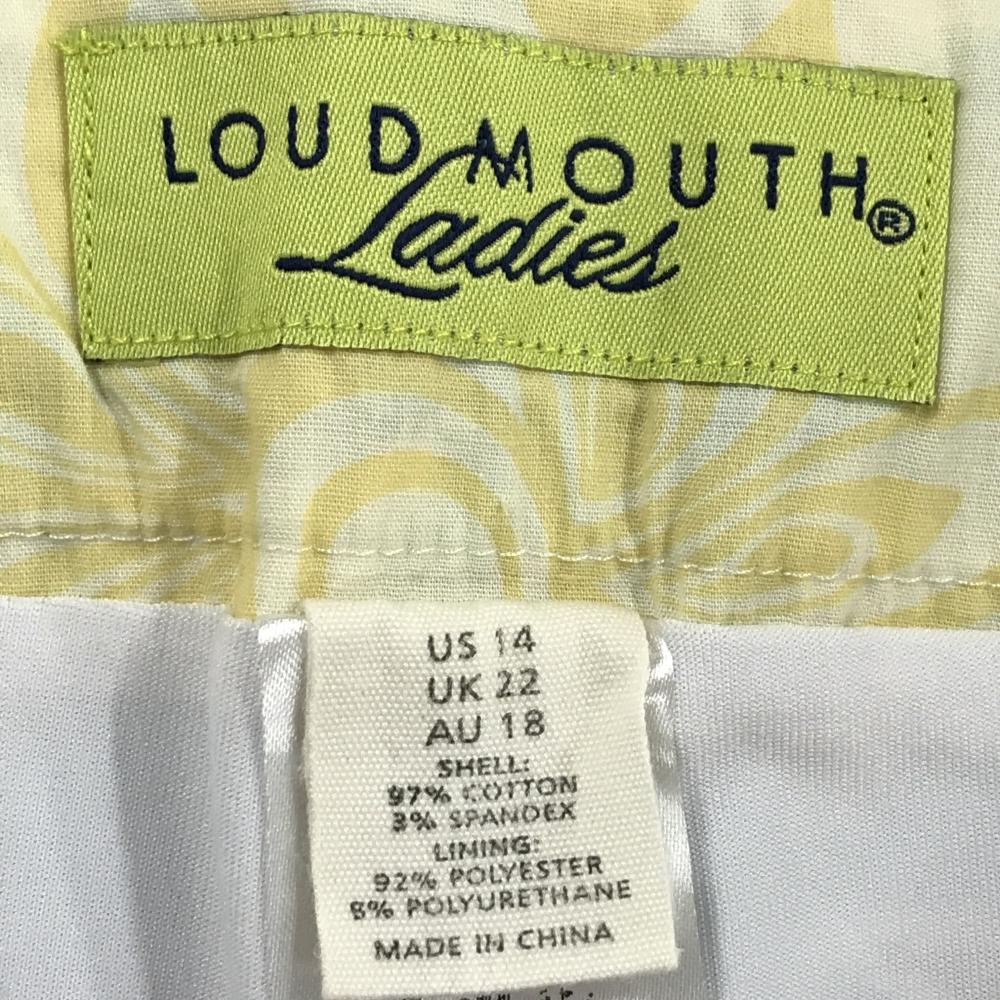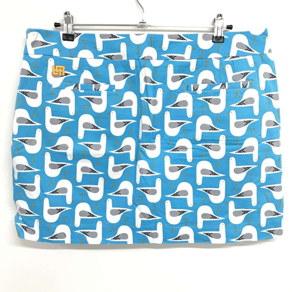 【美品】ラウドマウス スカート ライトブルー×白 鳥総柄 ロゴ刺しゅう レディース US-14 ゴルフウェア 大きいサイズ LOUDMOUTH