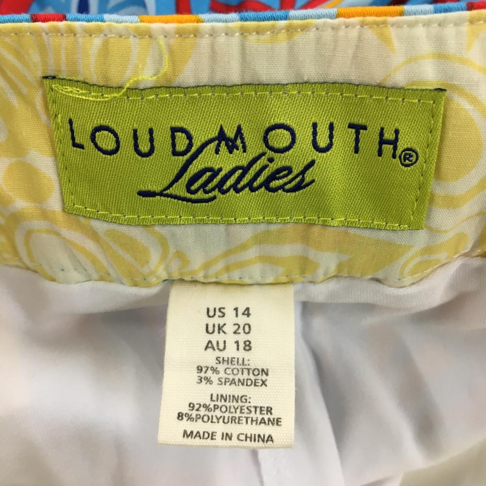 【超美品】ラウドマウス スカート ブルー×レッド ニワトリ総柄 レディース US-14 ゴルフウェア 大きいサイズ LOUDMOUTH