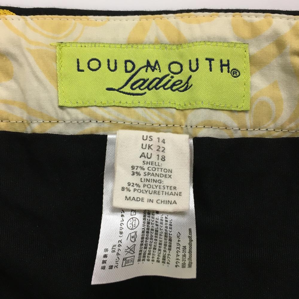【超美品】ラウドマウス スカート 黒×イエロー アヒル総柄 ロゴ刺しゅう レディース US-14 ゴルフウェア 大きいサイズ LOUDMOUTH