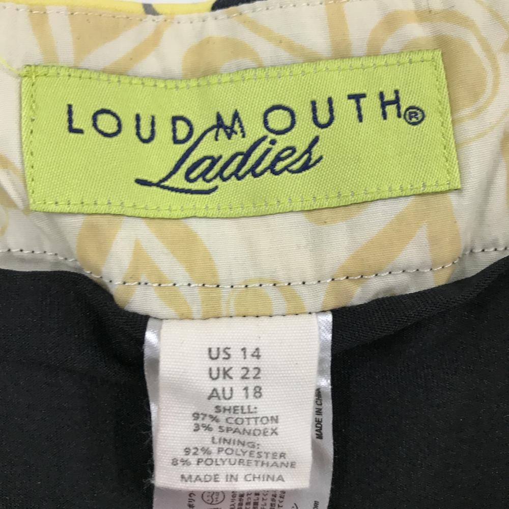 【超美品】ラウドマウス スカート グレー×イエロー シカ総柄 ロゴ刺しゅう レディース US-14 ゴルフウェア 大きいサイズ LOUDMOUTH