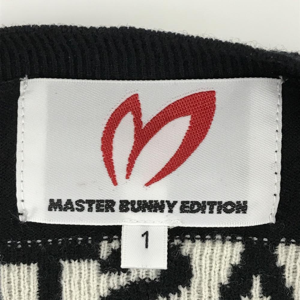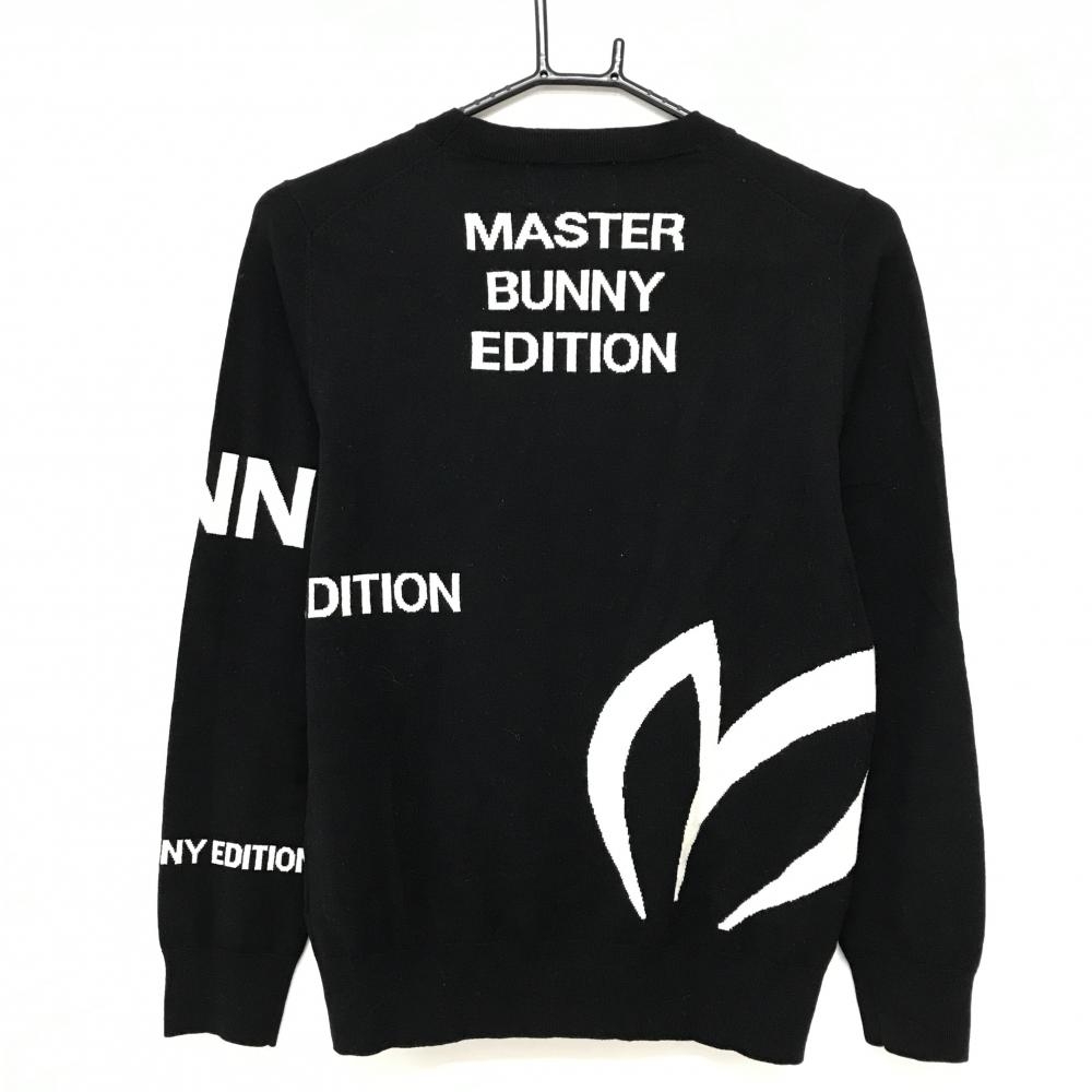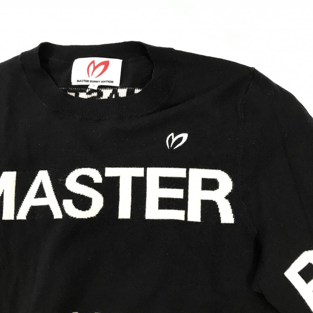 【超美品】マスターバニー セーター 黒×白 ビッグロゴ総柄 ウール混 レディース 1(M) ゴルフウェア MASTER BUNNY EDITION
