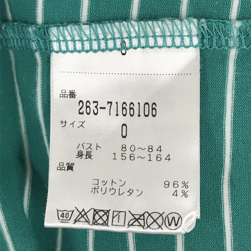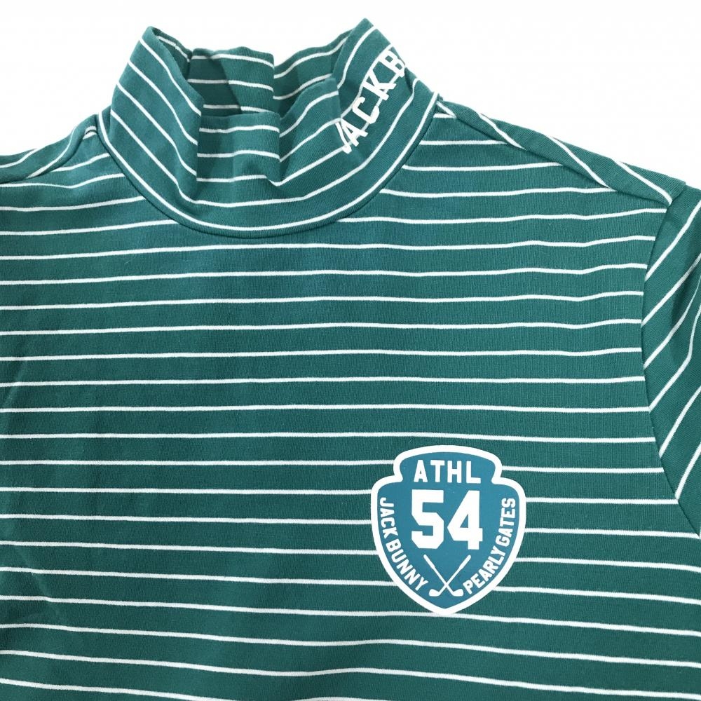 【美品】ジャックバニー 長袖ハイネックシャツ グリーン×白 ボーダー ロゴ レディース 0(S) ゴルフウェア Jack Bunny