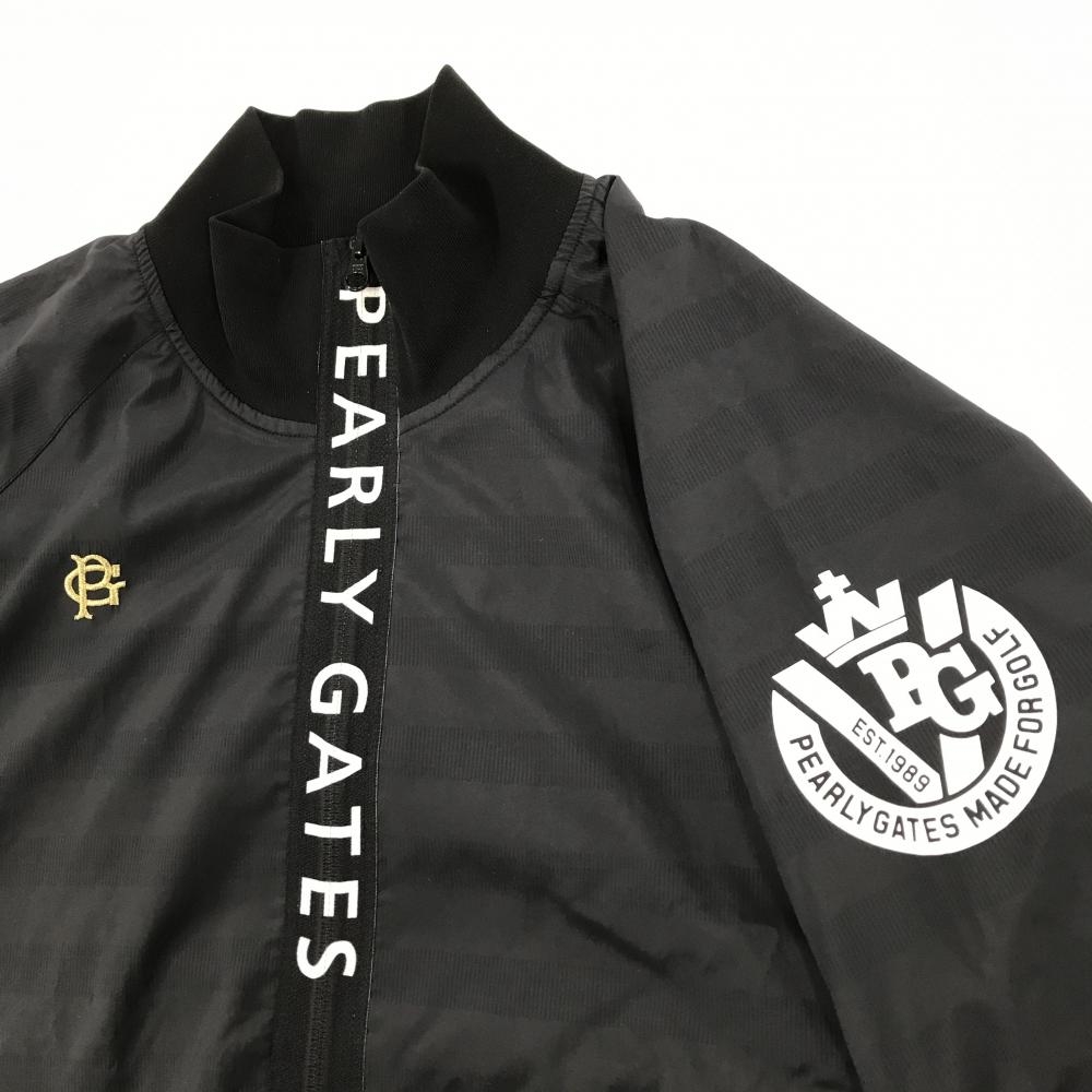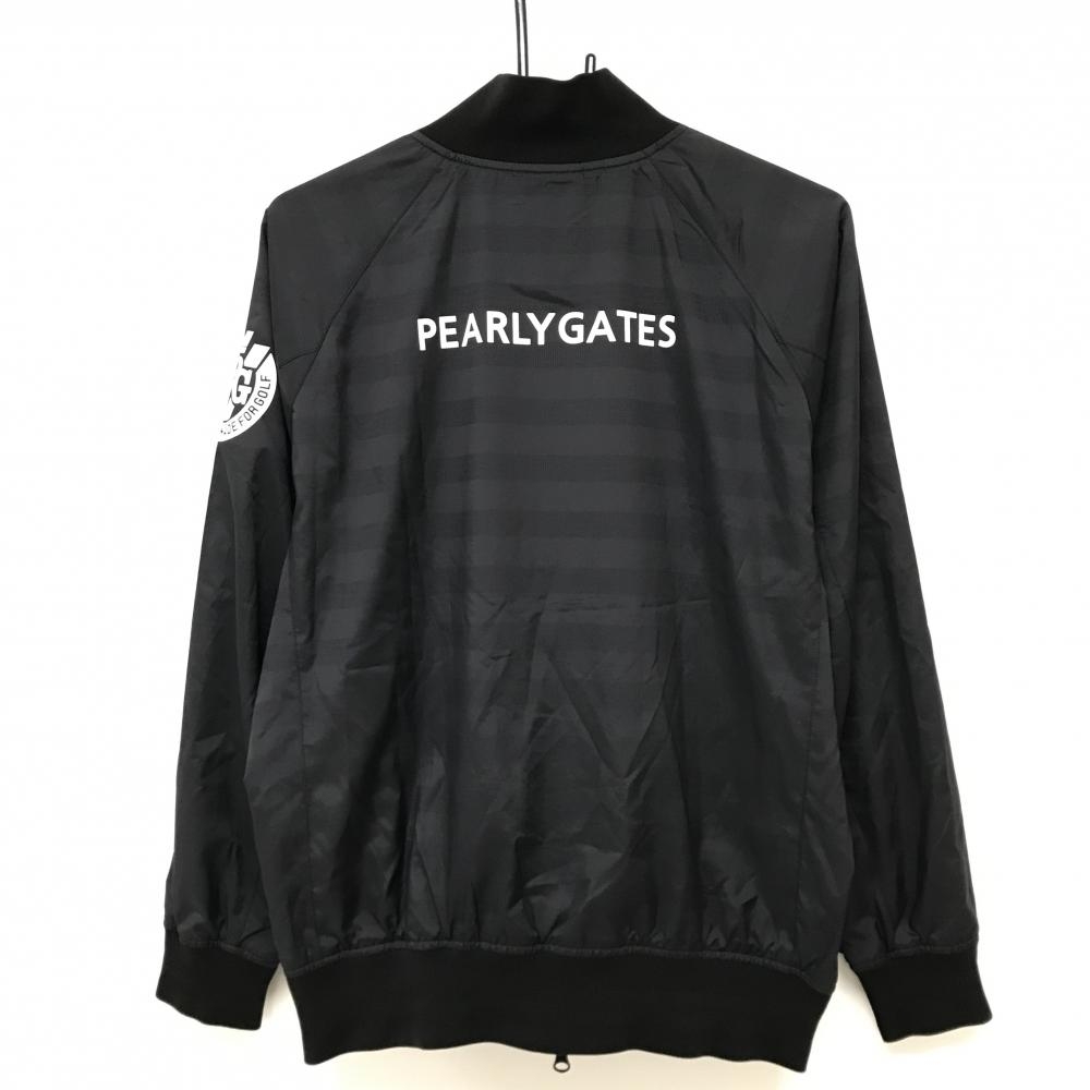 【美品】パーリーゲイツ ジャケットブルゾン 黒 蓄熱裏地 ボーダー地模様 ジップロゴ レディース 2(L) ゴルフウェア PEARLY GATES