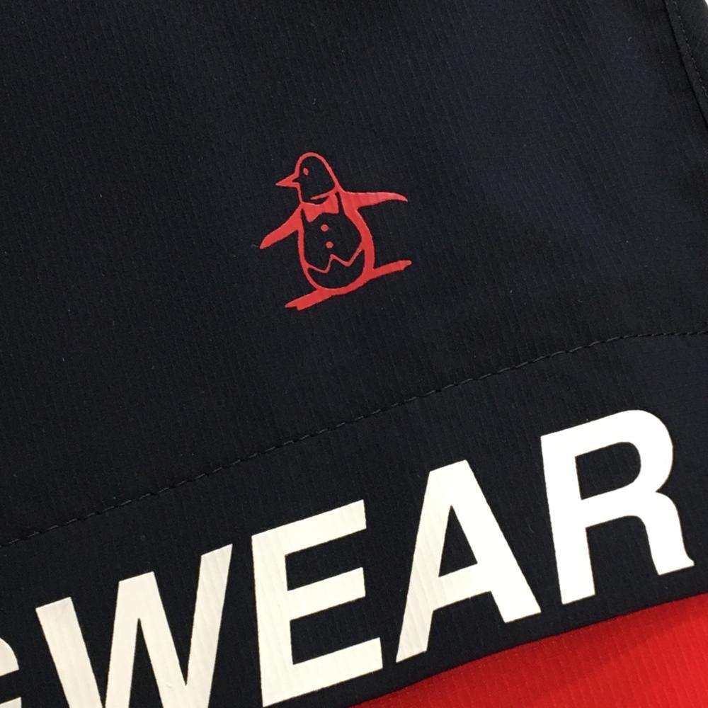 【超美品】マンシングウェア アウターベスト レッド×ネイビー ネックドローコード 裏地メッシュ レディース M ゴルフウェア Munsingwear