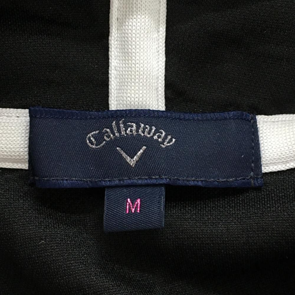 【超美品】キャロウェイ ジップパーカー 黒 花柄織生地 ロゴ白 ダブルジップ レディース M ゴルフウェア Callaway