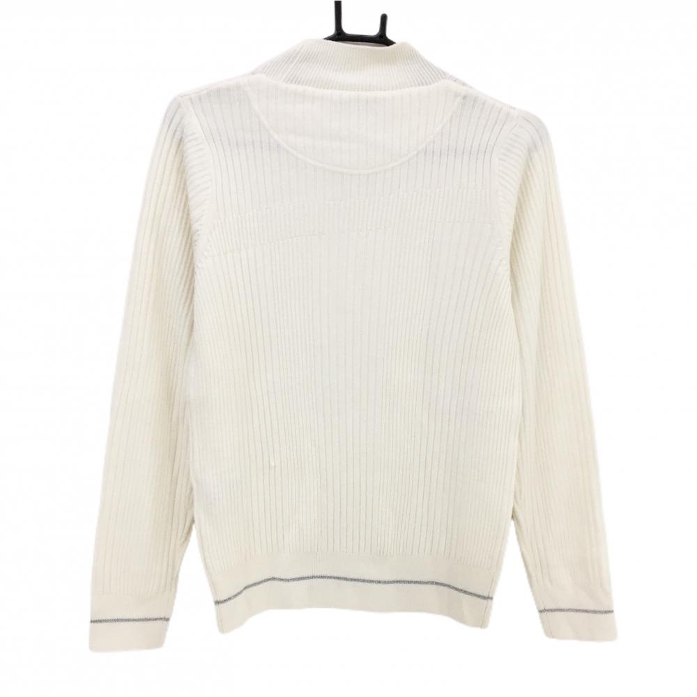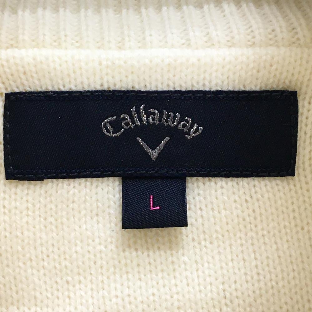 キャロウェイ ハイネックセーター 白 ランダムリブ編み ロゴシルバー ウール混 ニット レディース L ゴルフウェア Callaway
