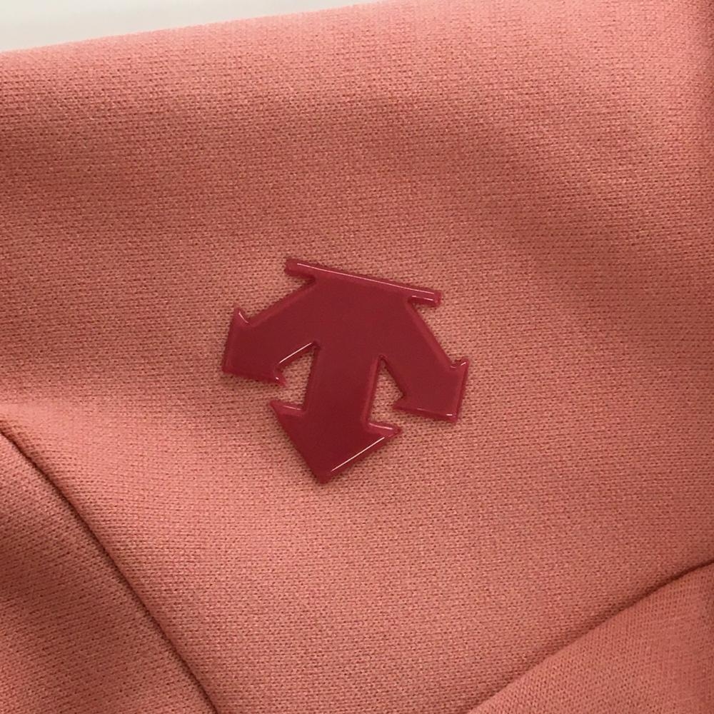 【美品】デサントゴルフ ジップパーカー サーモンピンク 肩・フードロゴ 中田英寿 レディース L ゴルフウェア DESCENTE