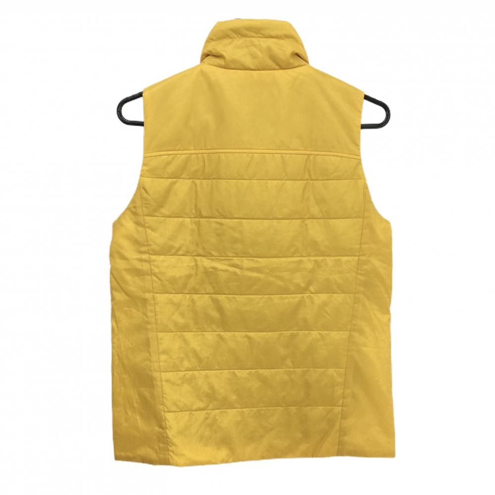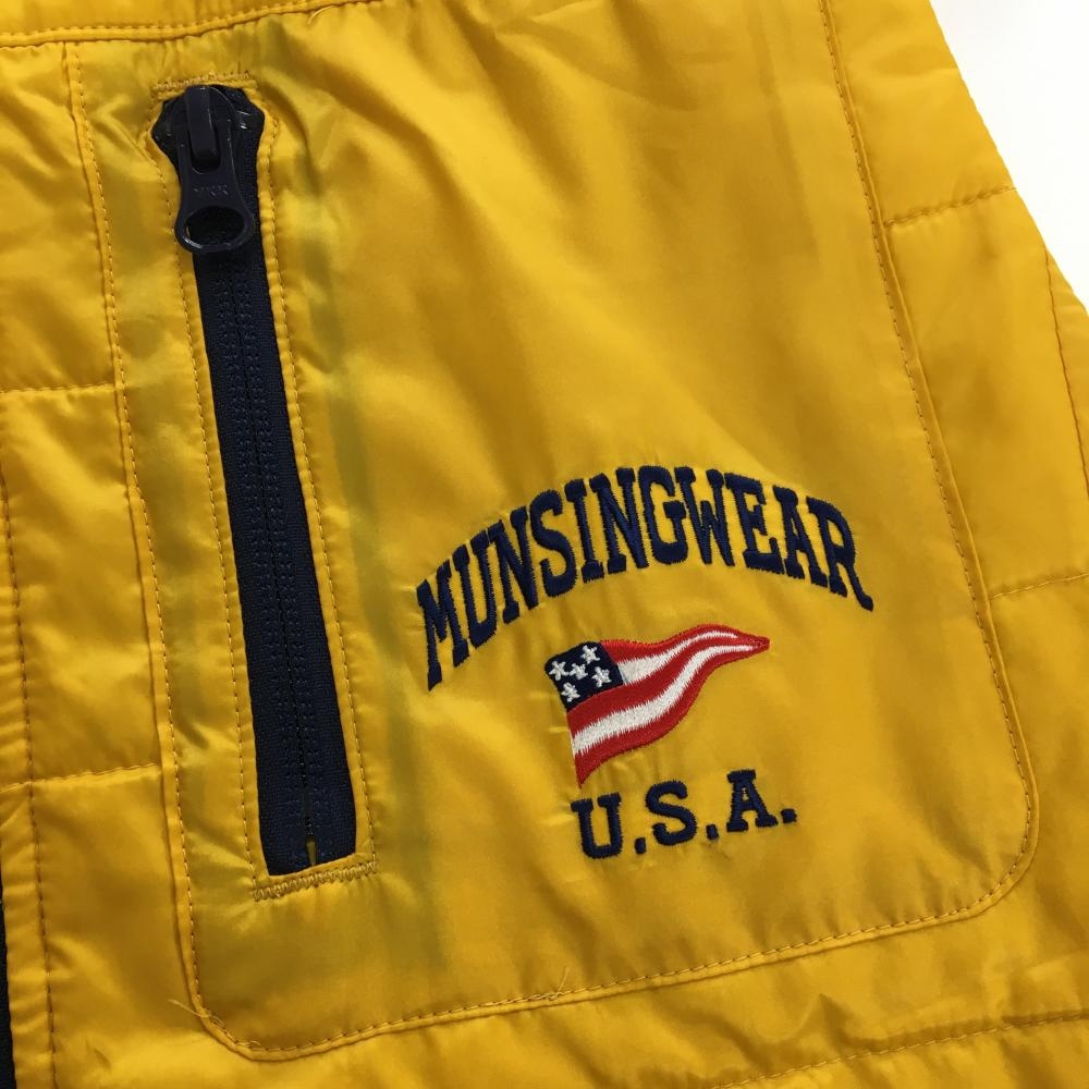 【美品】マンシングウェア 中綿ベスト イエロー×ネイビー ロゴ刺しゅう ジップポケット レディース M ゴルフウェア Munsingwear