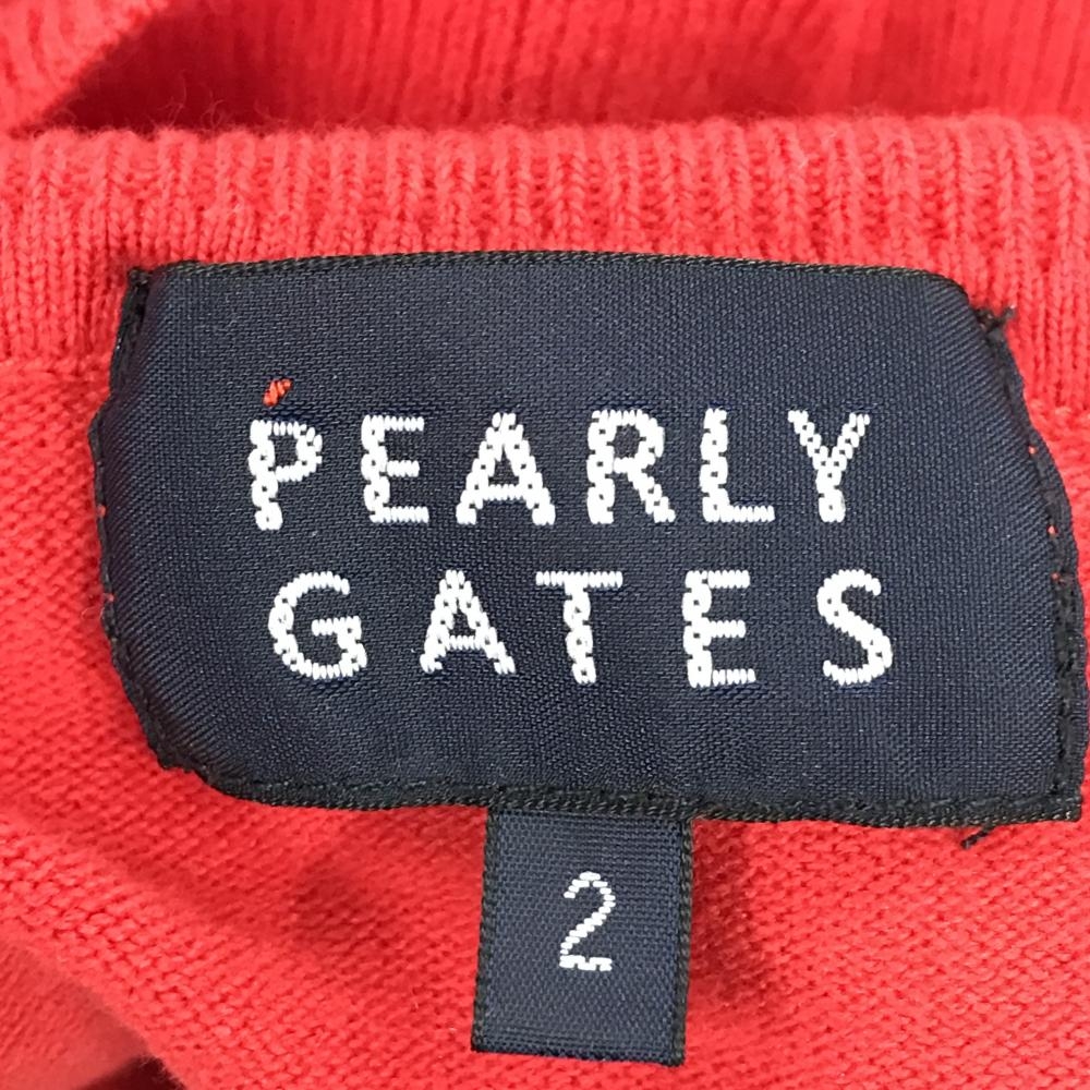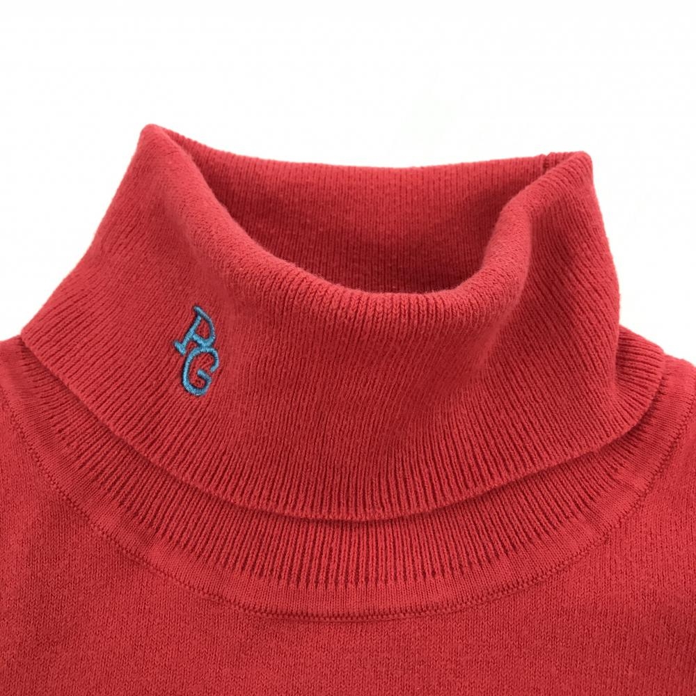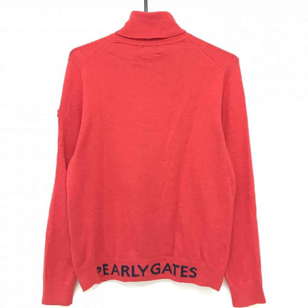 パーリーゲイツ タートルネックセーター レッド 袖ロゴワッペン ニット レディース 2(L) ゴルフウェア PEARLY GATES