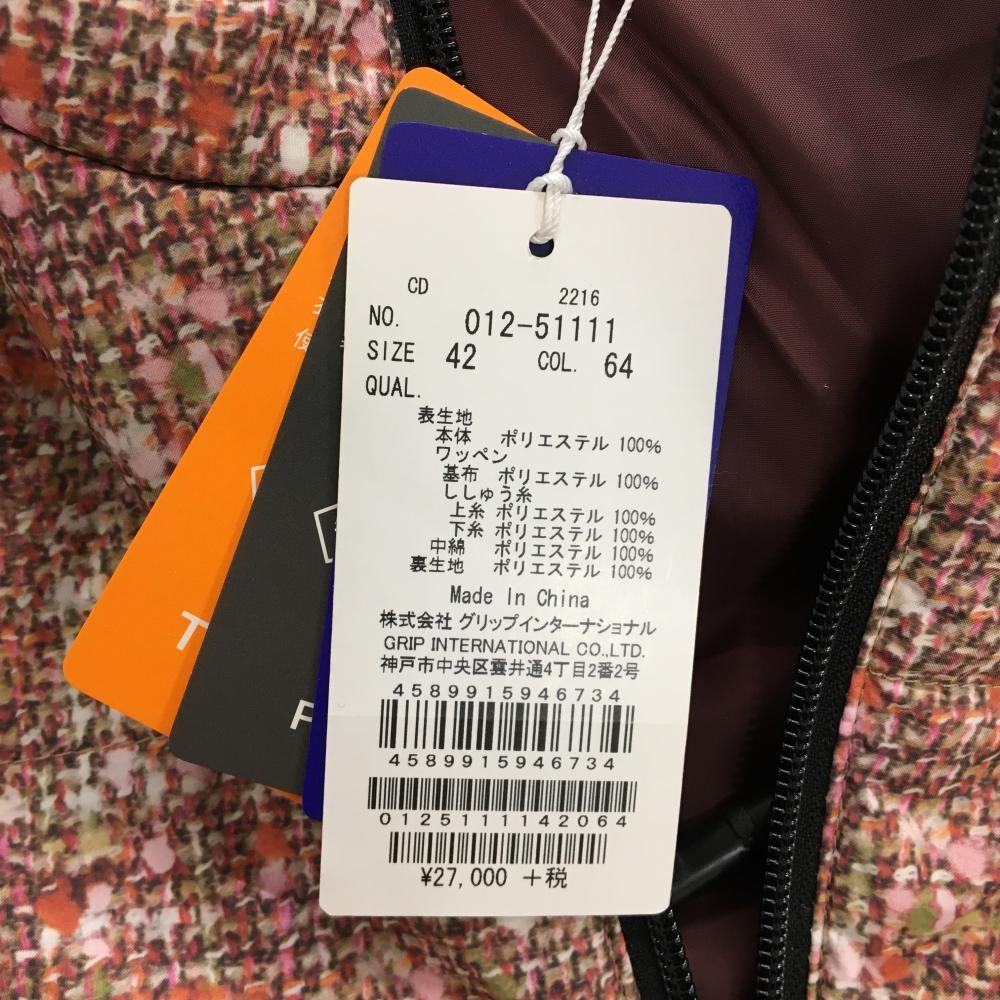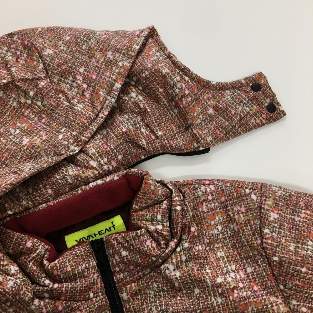 【未使用品】ビバハート フード付中綿ジャケット ボルドー系 ツイード調 フード取外し可 袖ロゴ レディース 42(L) ゴルフウェア VIVA HEART