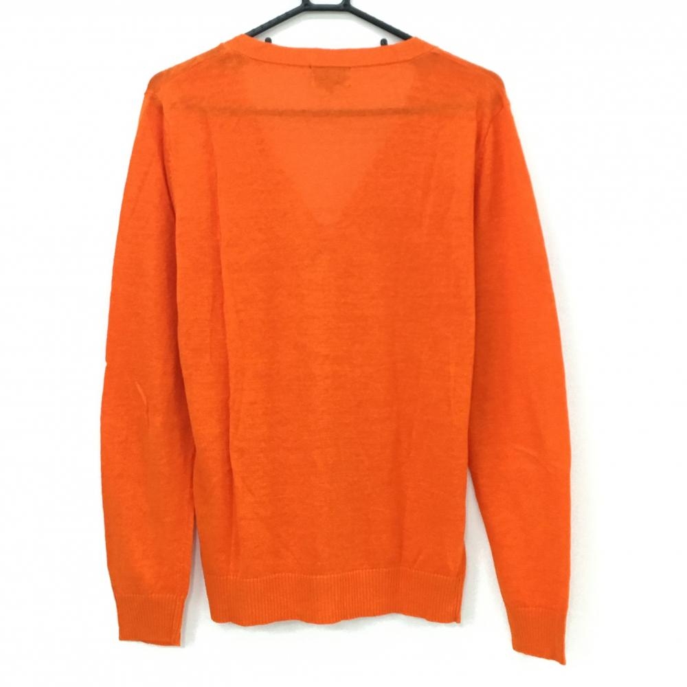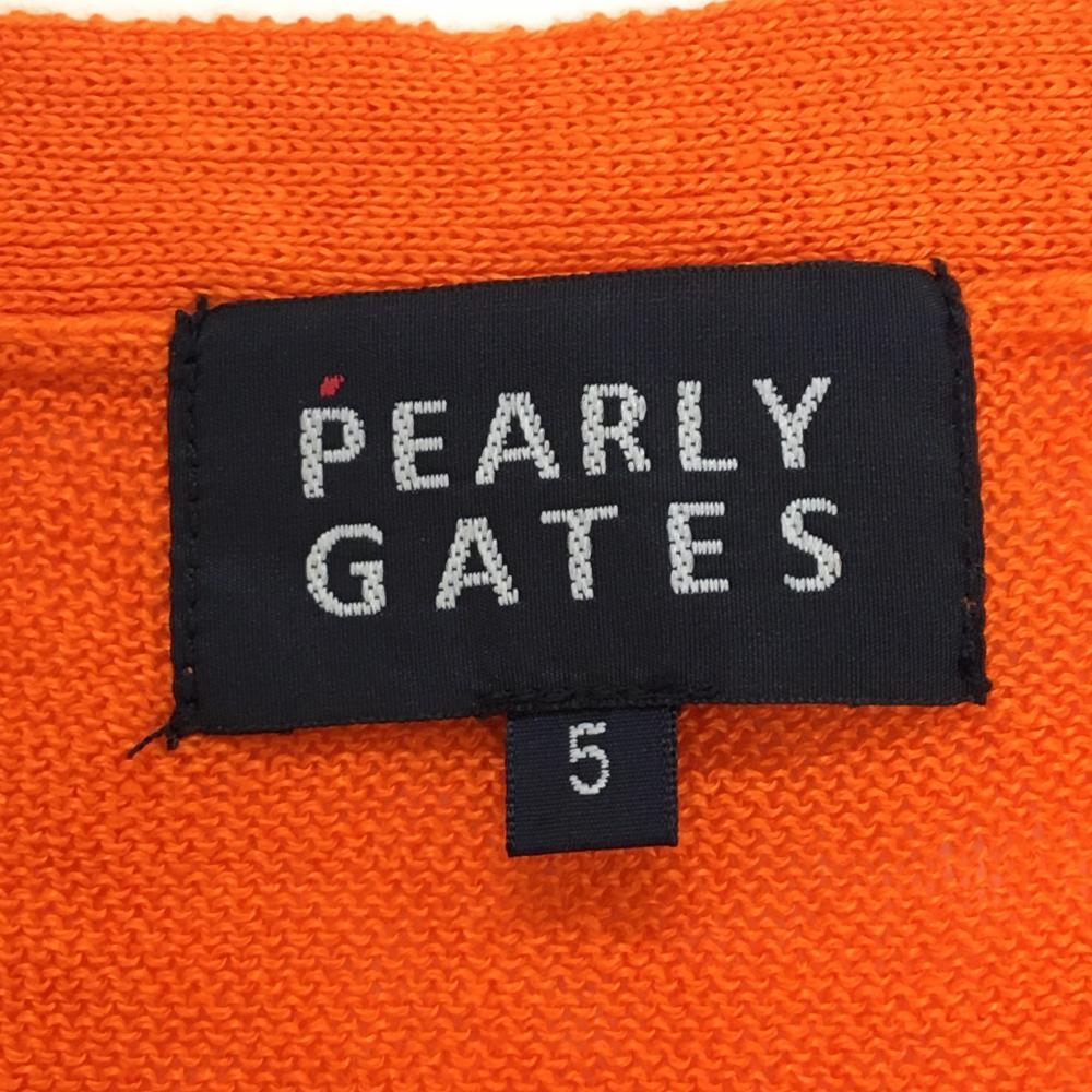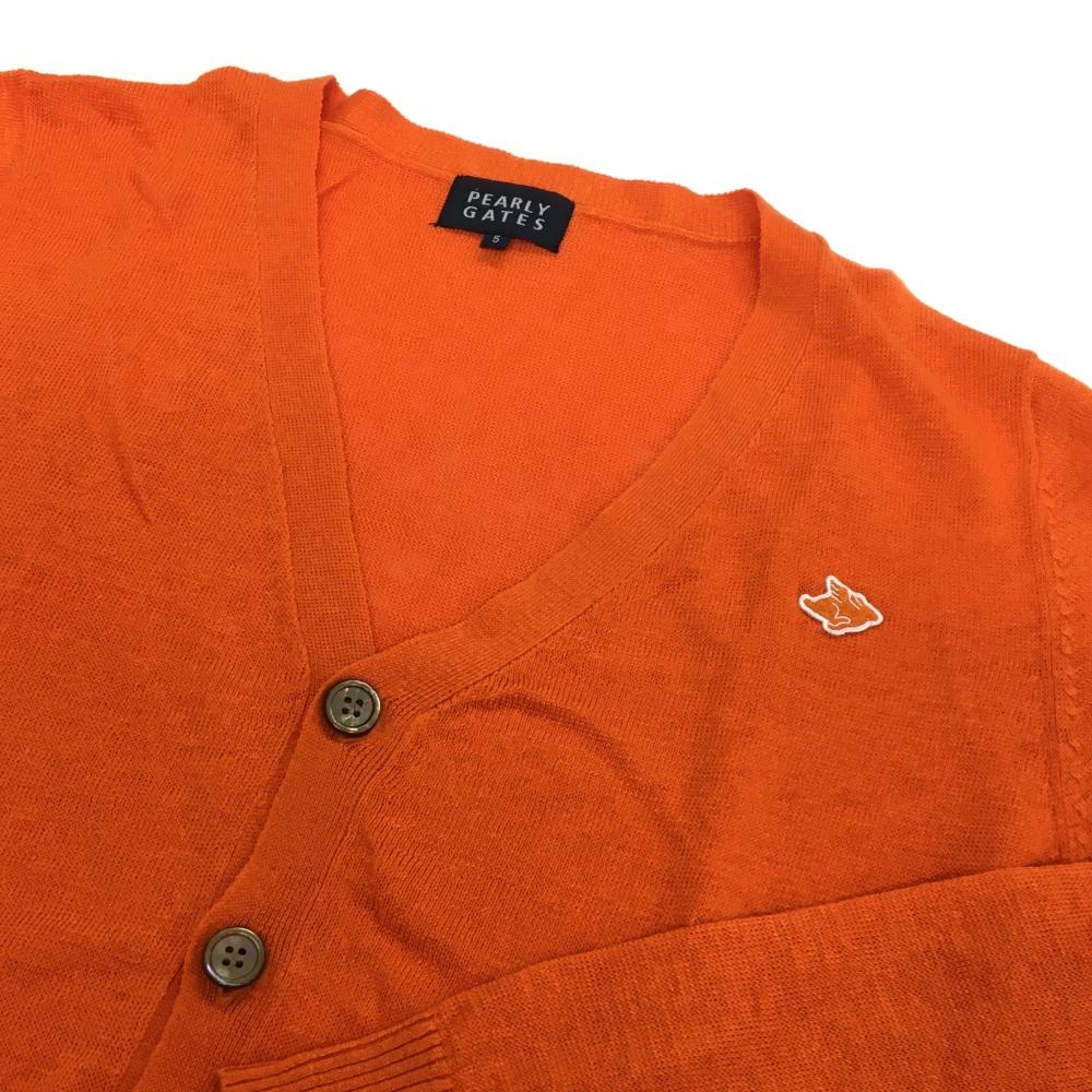 【超美品】パーリーゲイツ ニットカーディガン オレンジ 麻100% 薄手 メンズ 5(L) ゴルフウェア PEARLY GATES