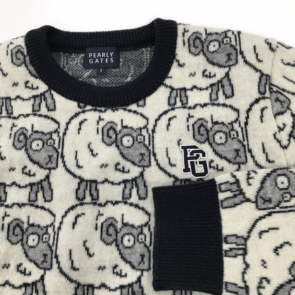 【美品】パーリーゲイツ セーター 白×ネイビー ひつじ総柄 ニット メンズ 6(XL) ゴルフウェア PEARLY GATES