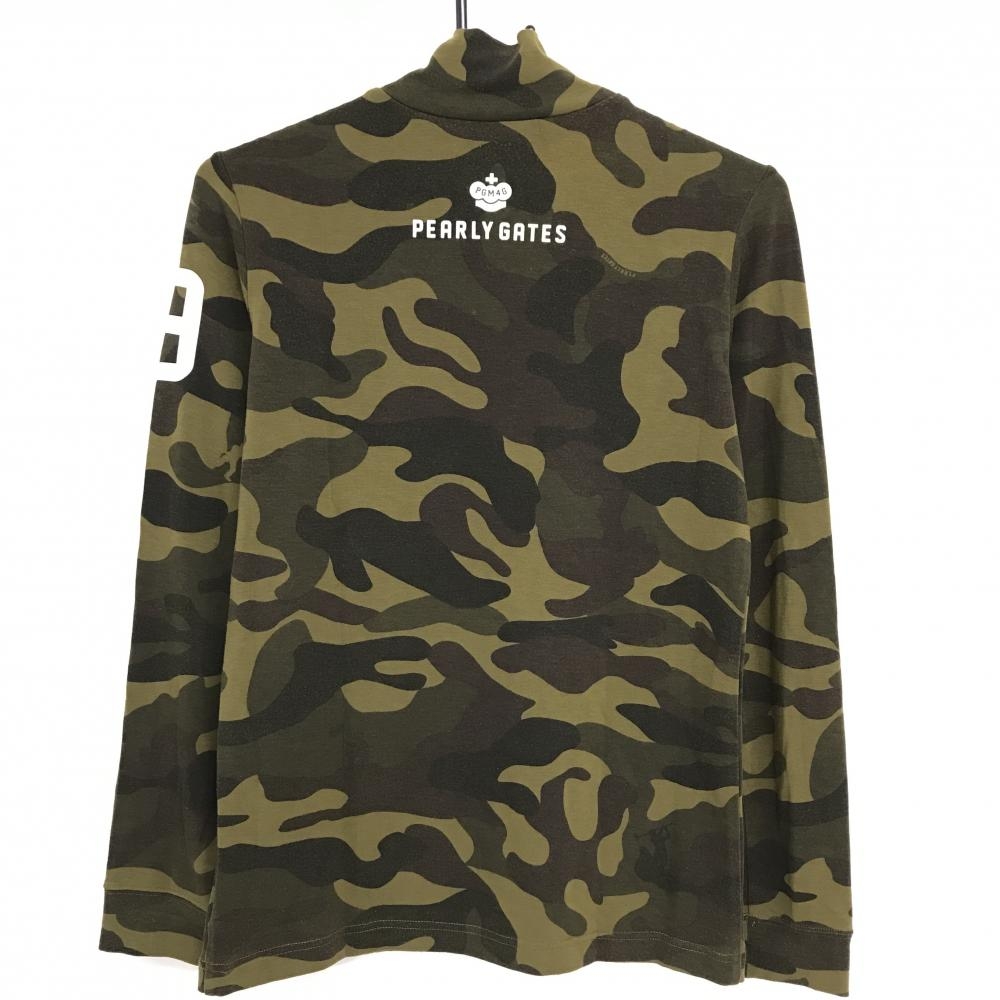 パーリーゲイツ 長袖ハイネックシャツ ブラウン×カーキ カモフラ柄 迷彩 ストレッチ レディース 1(M) ゴルフウェア PEARLY GATES
