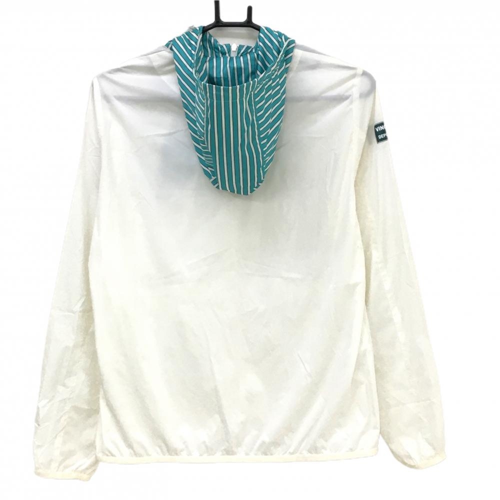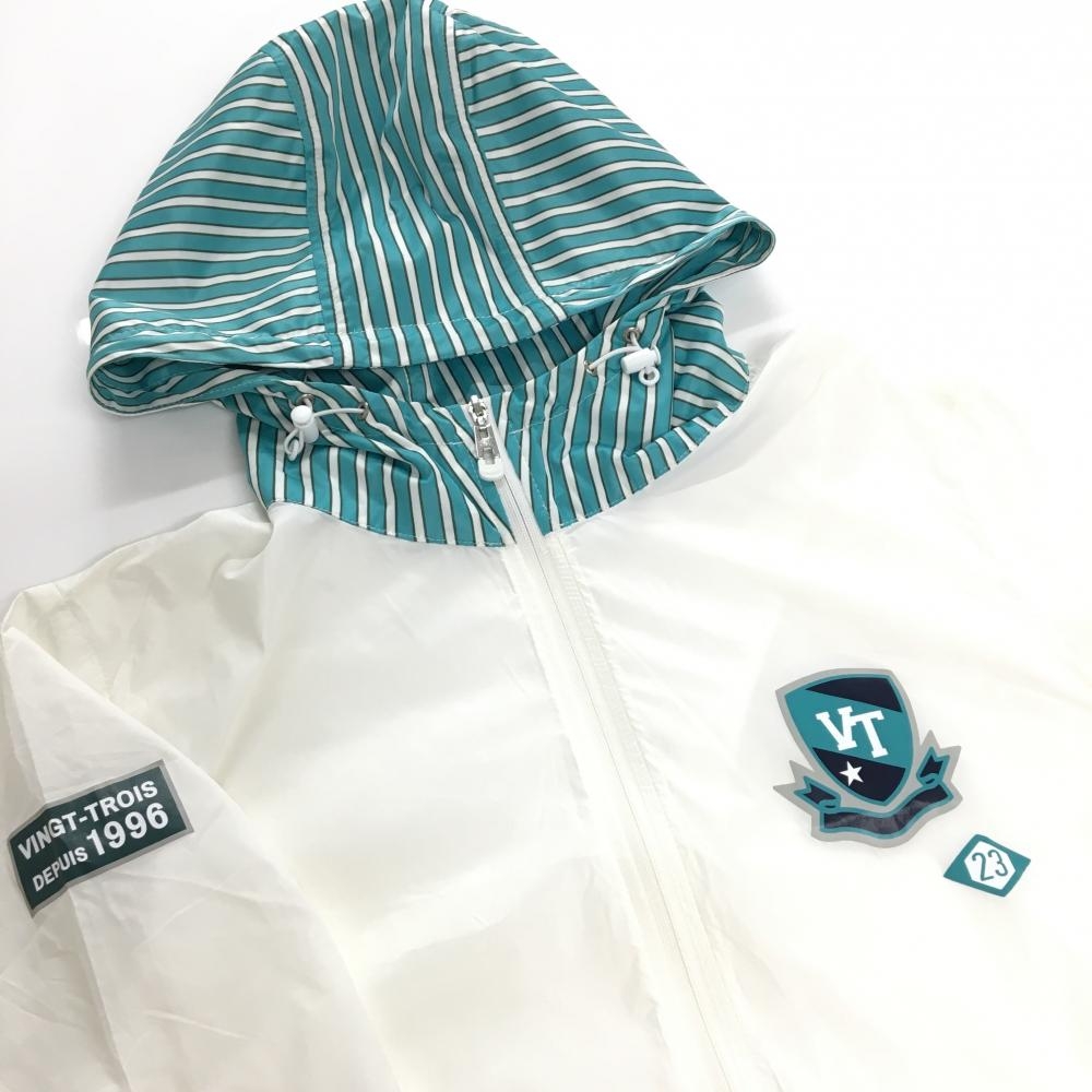 【美品】23区ゴルフ ジップパーカー 白×グリーン フードストライプ 薄手 レディース II(L) ゴルフウェア 23区