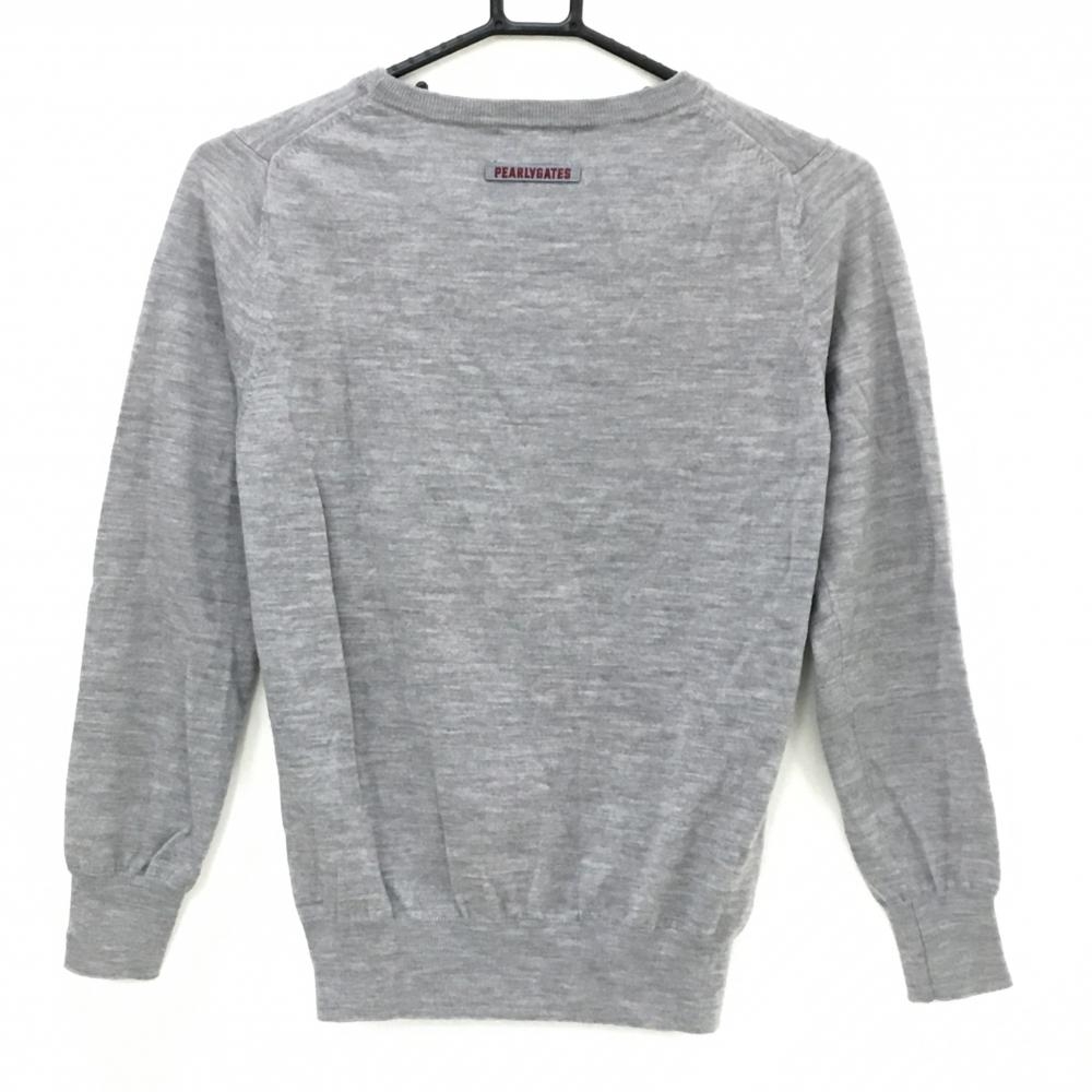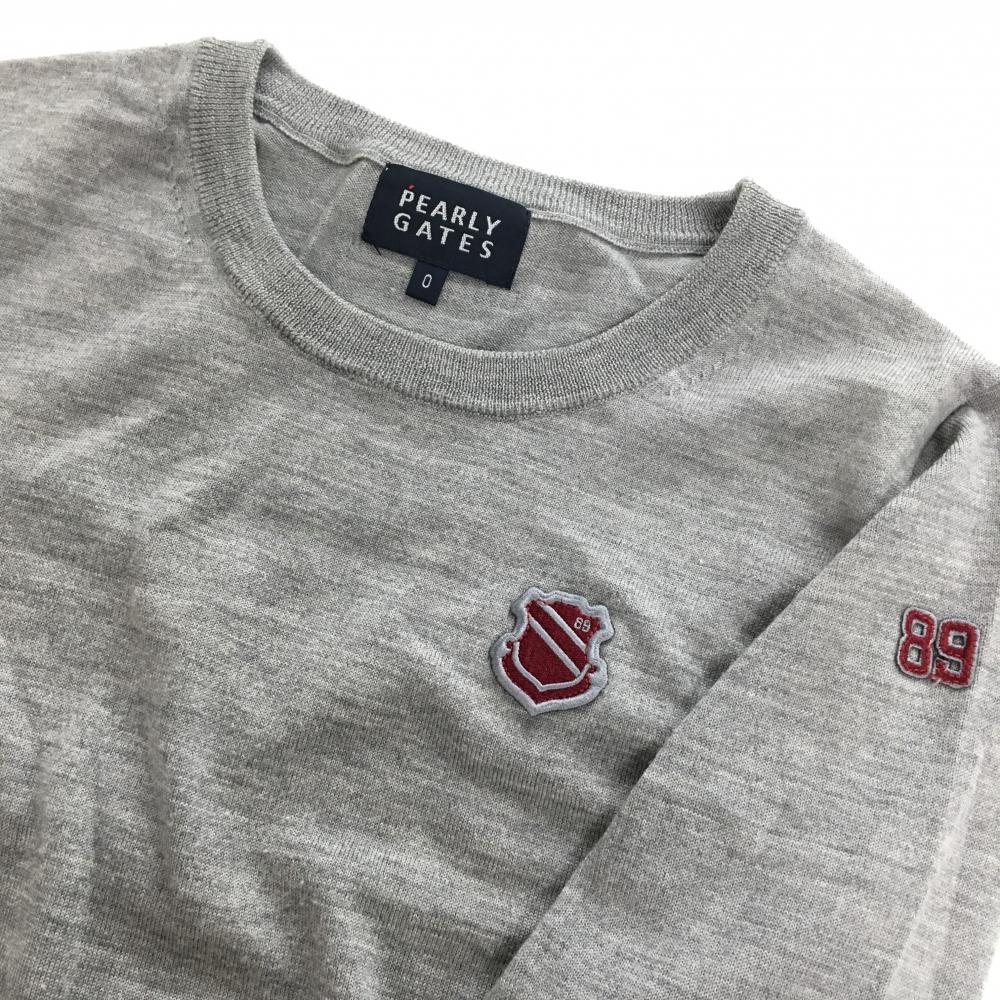 【超美品】パーリーゲイツ セーター 杢グレー ワッペン ウール100% ニット レディース 0(S) ゴルフウェア PEARLY GATES