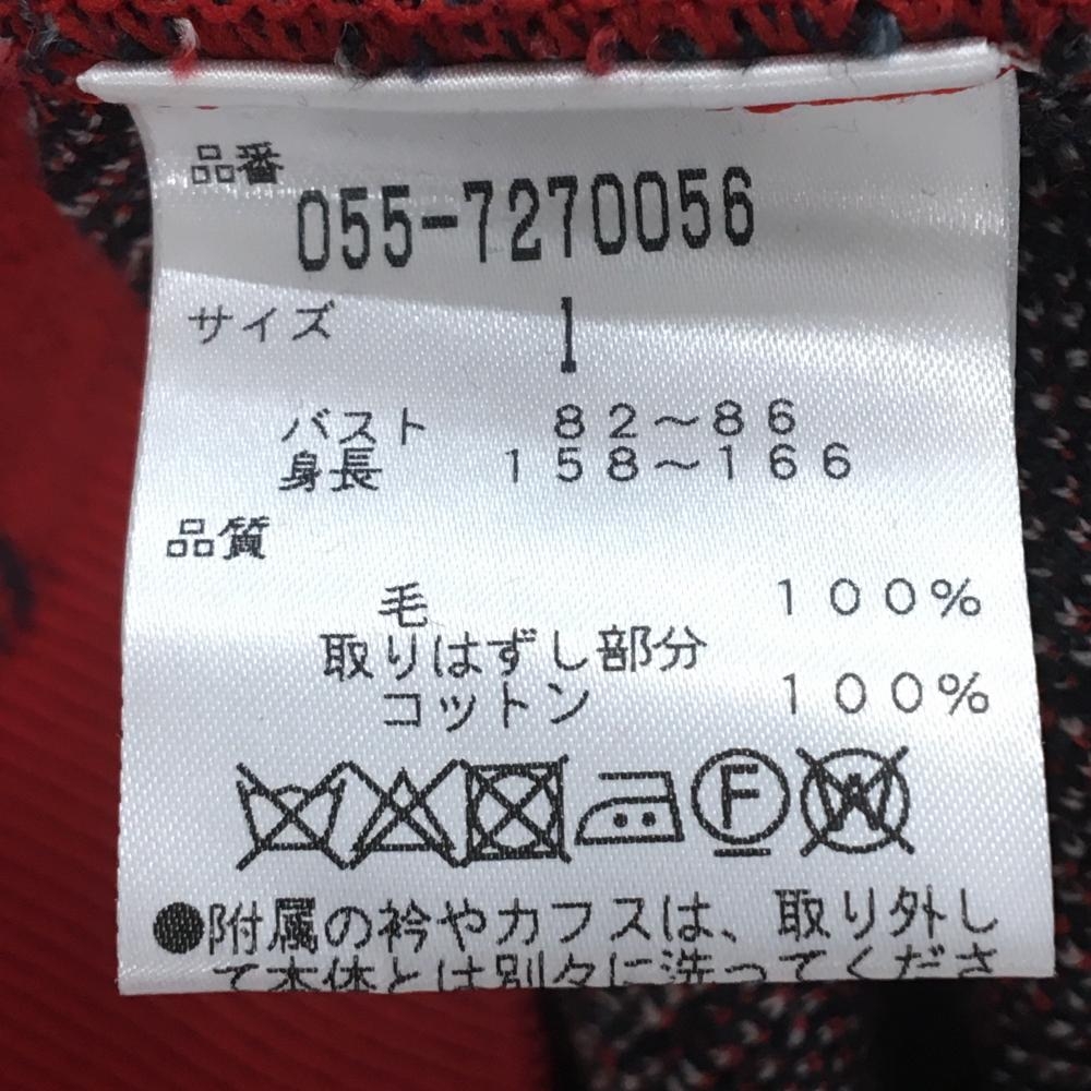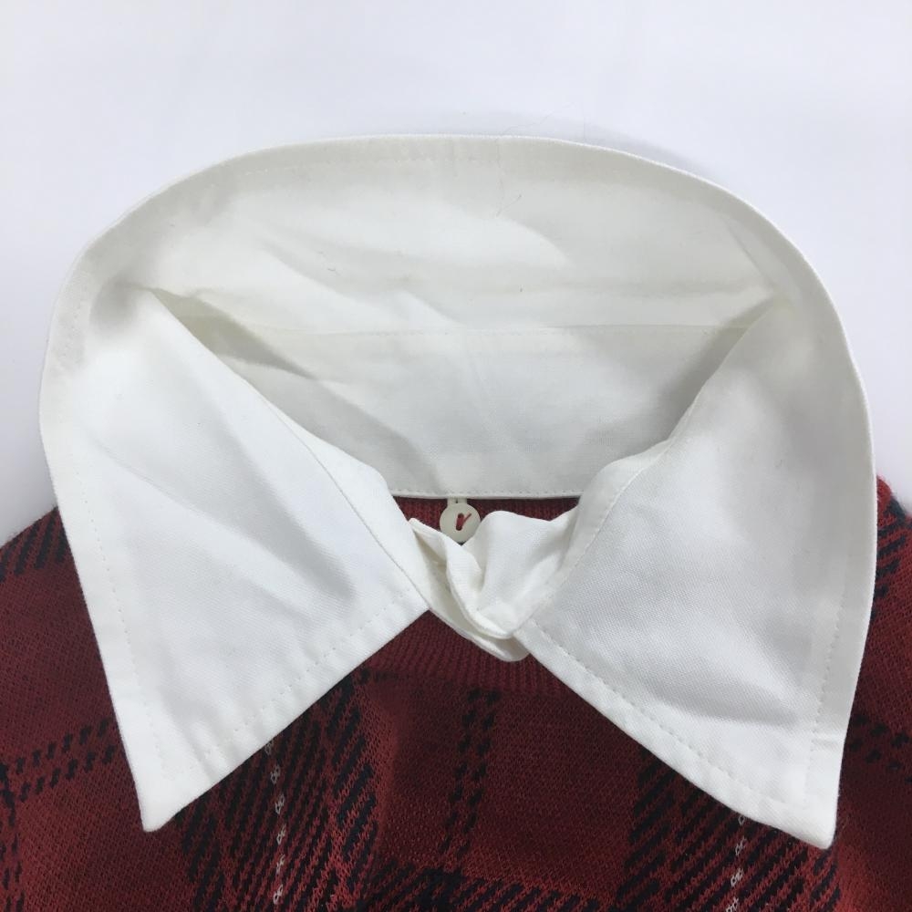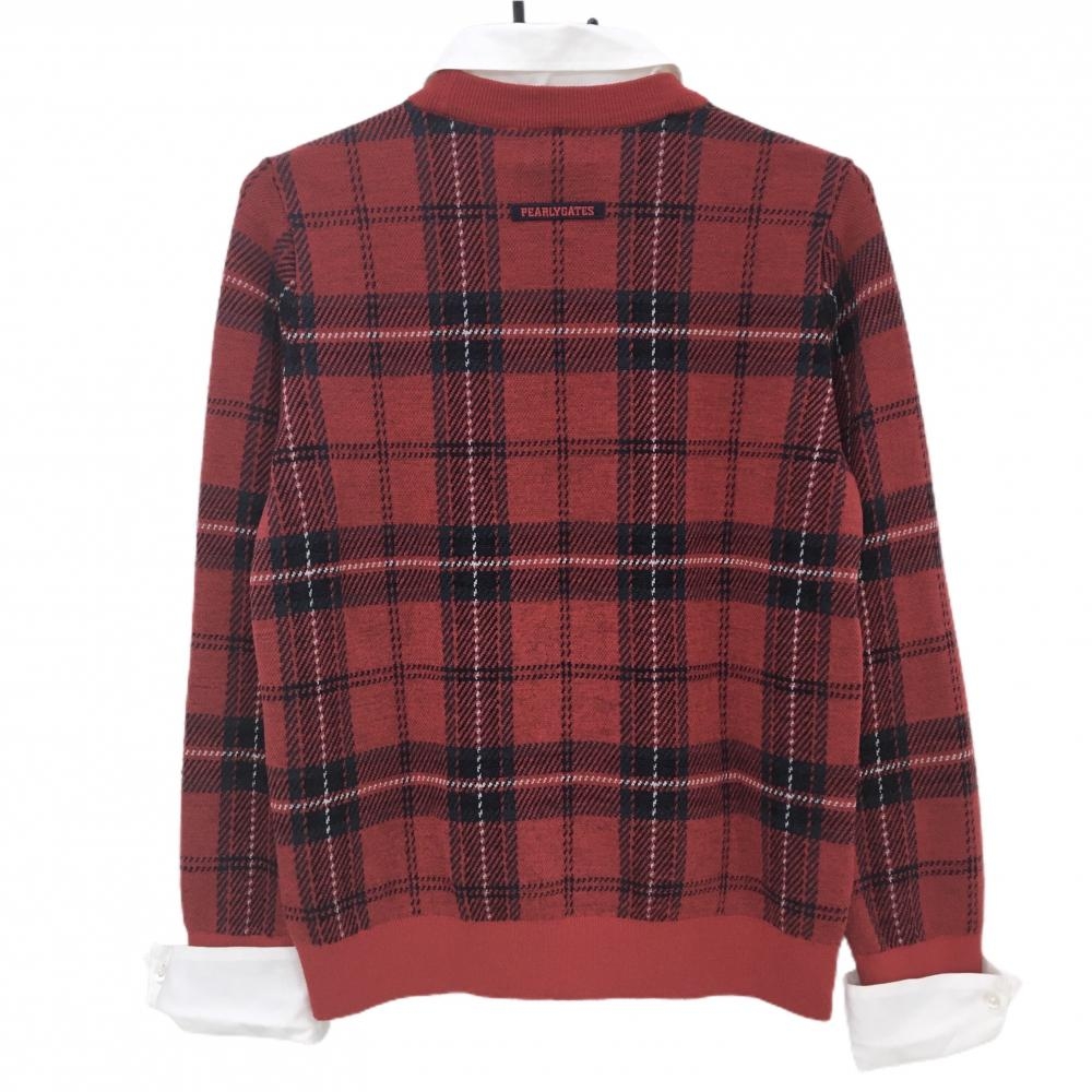 【美品】パーリーゲイツ セーター レッド×ネイビー チェック 襟・袖口着脱可 ウール100% レディース 1(M) ゴルフウェア PEARLY GATES