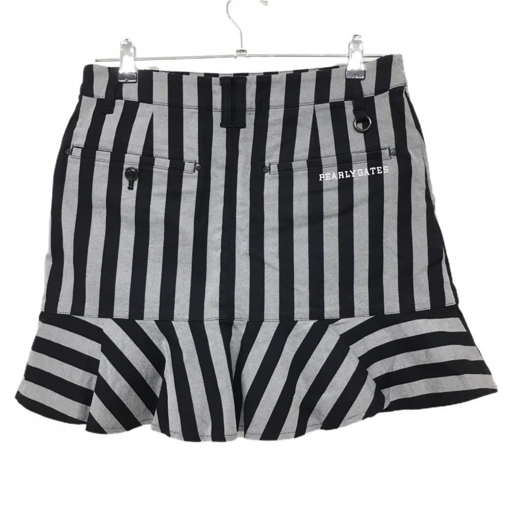 【美品】パーリーゲイツ スカート 黒×グレー ストライプ 裾フリル風 レディース 0(S) ゴルフウェア PEARLY GATES