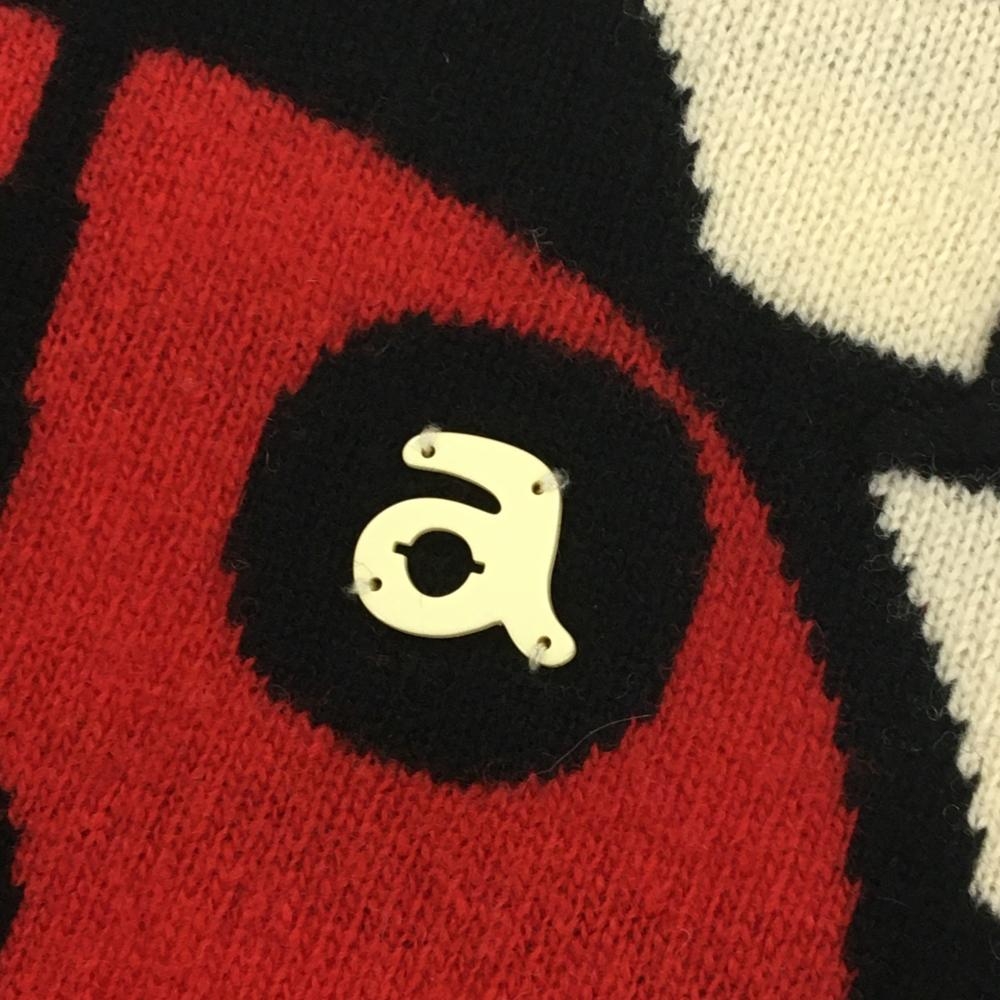 【美品】アルチビオ タートルネックセーター 白×黒 ボーダー てんとう虫柄 ウール100% レディース 36(S) ゴルフウェア archivio