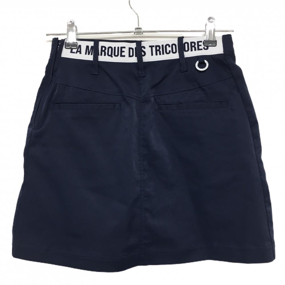 【超美品】ルコックゴルフ スカート ネイビー×白 サイドライン ロゴ刺しゅう レディース 7 ゴルフウェア le coq sportif