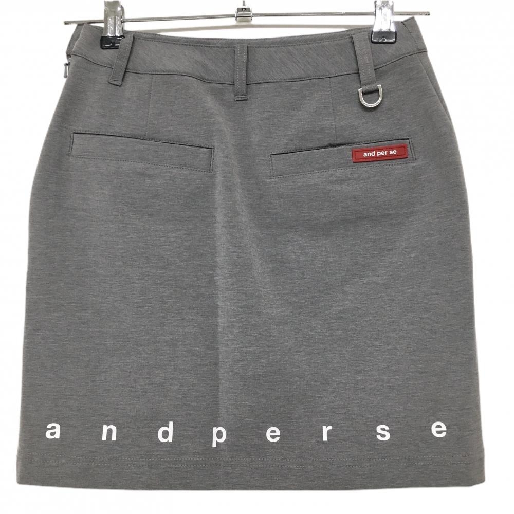 【超美品】アンパスィ スカート 杢グレー 裾ロゴプリント レディース XS ゴルフウェア and per se