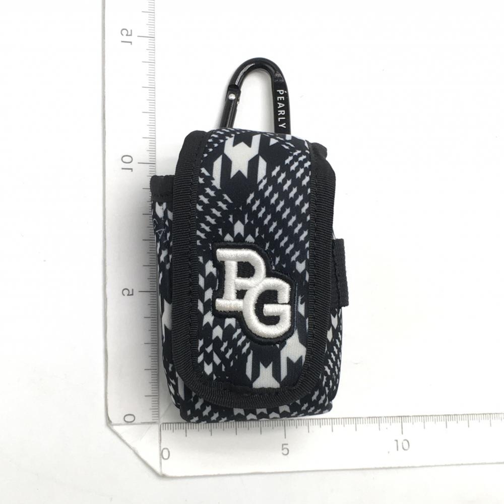 【超美品】パーリーゲイツ ボールケース 黒×白 グレンチェック風 マグネット開閉 カラビナ付 ゴルフ PEARLY GATES