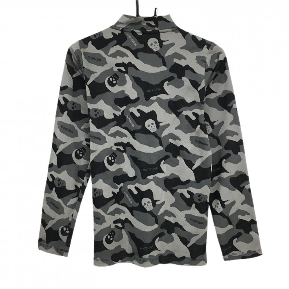 マークアンドロナ 長袖ハイネックシャツ 黒×グレー カモフラ柄 迷彩 スカル ハーフジップ メンズ M ゴルフウェア MARK&LONA