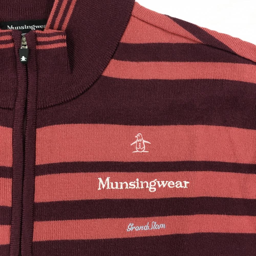 【超美品】マンシングウェア ハイネックセーター ボルドー×ピンクレッド 総柄 ハーフジップ メンズ L ゴルフウェア Munsingwear