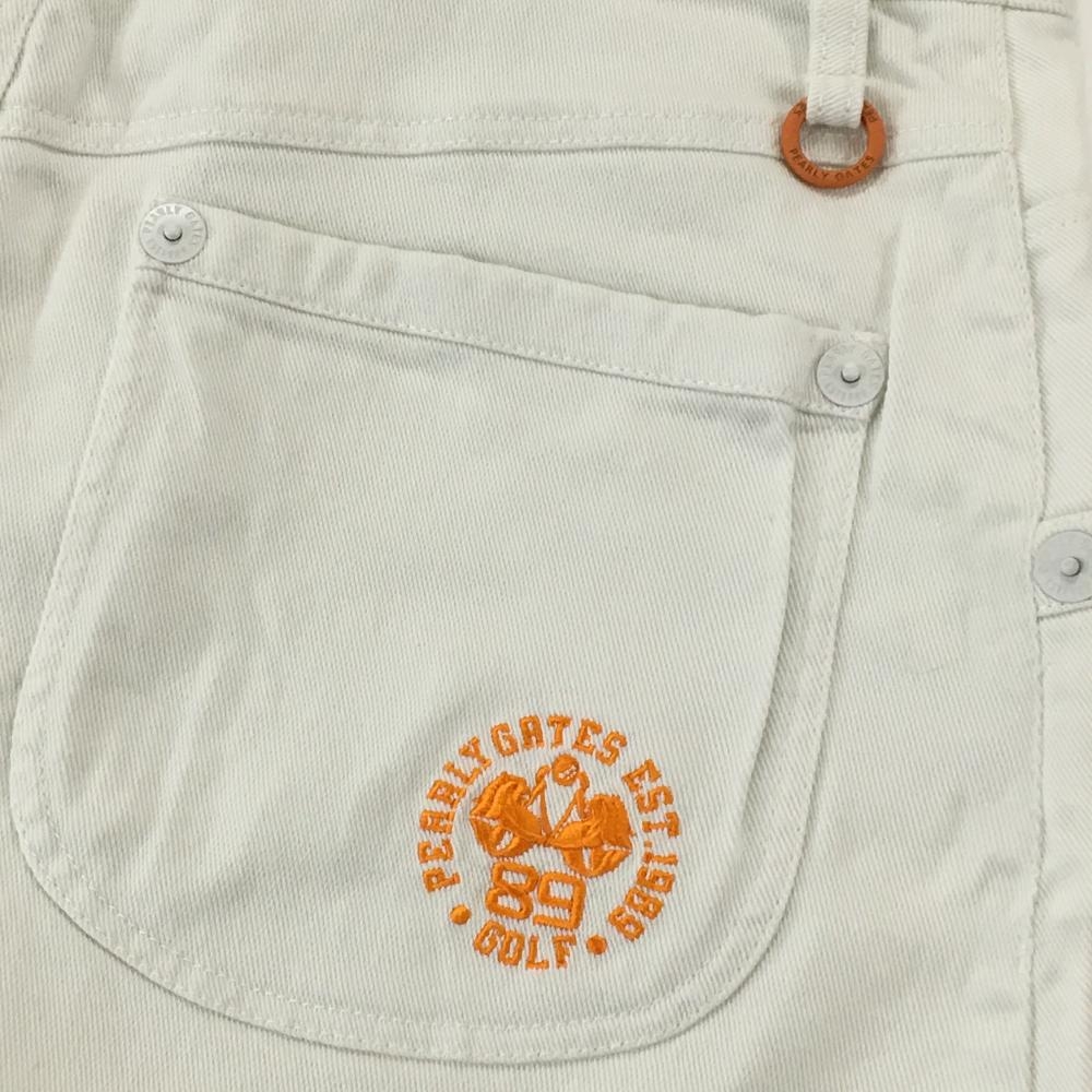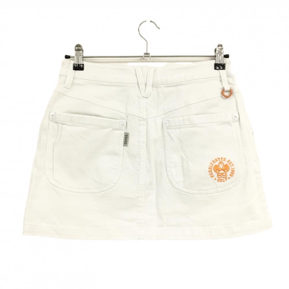 【超美品】パーリーゲイツ スカート 白 ロゴオレンジ ティー装着可 レディース 1(M) ゴルフウェア PEARLY GATES